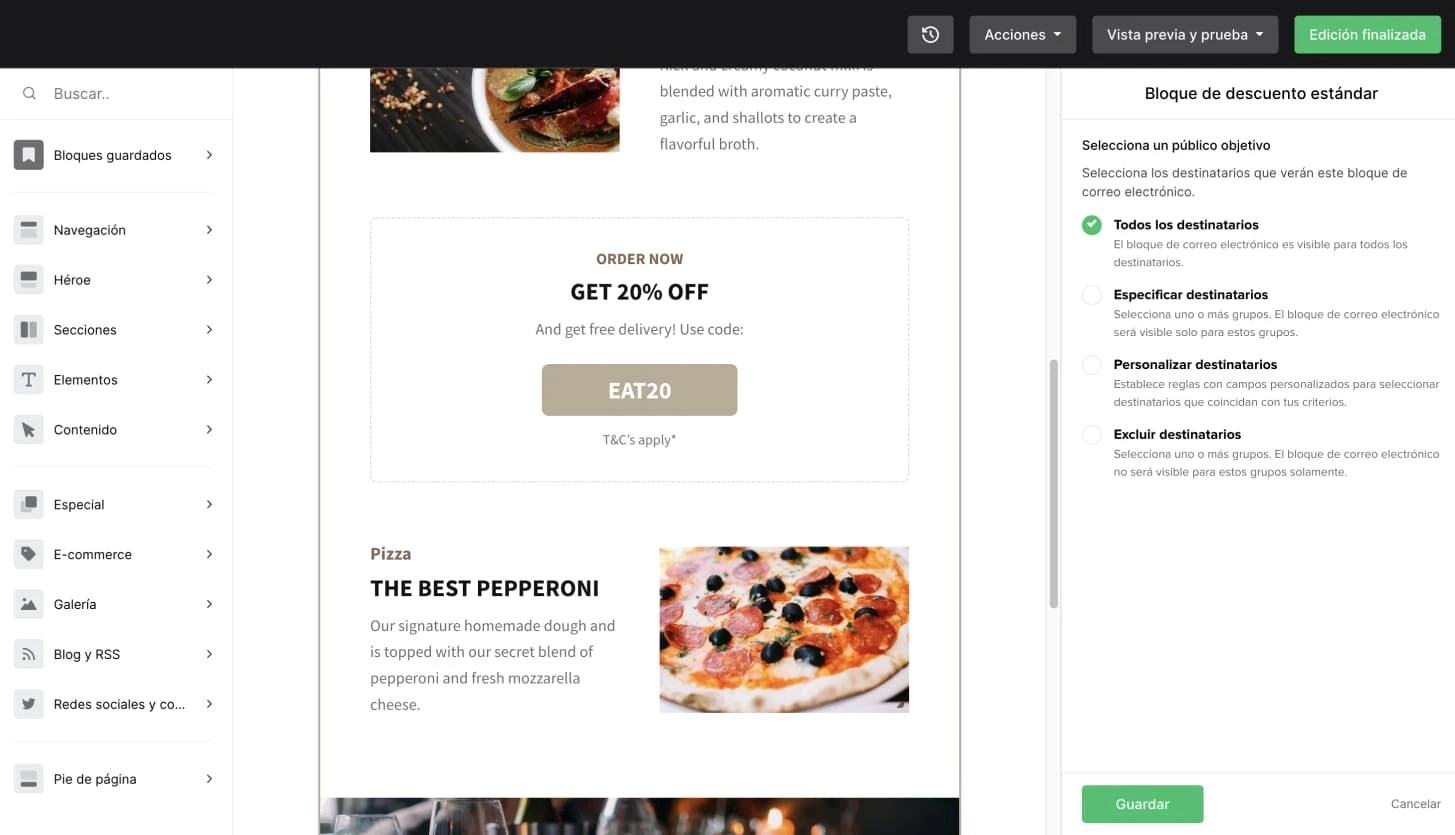 Descuentos específicos: Agrega una oferta especial en los productos en los que más hagan clic tus suscriptores