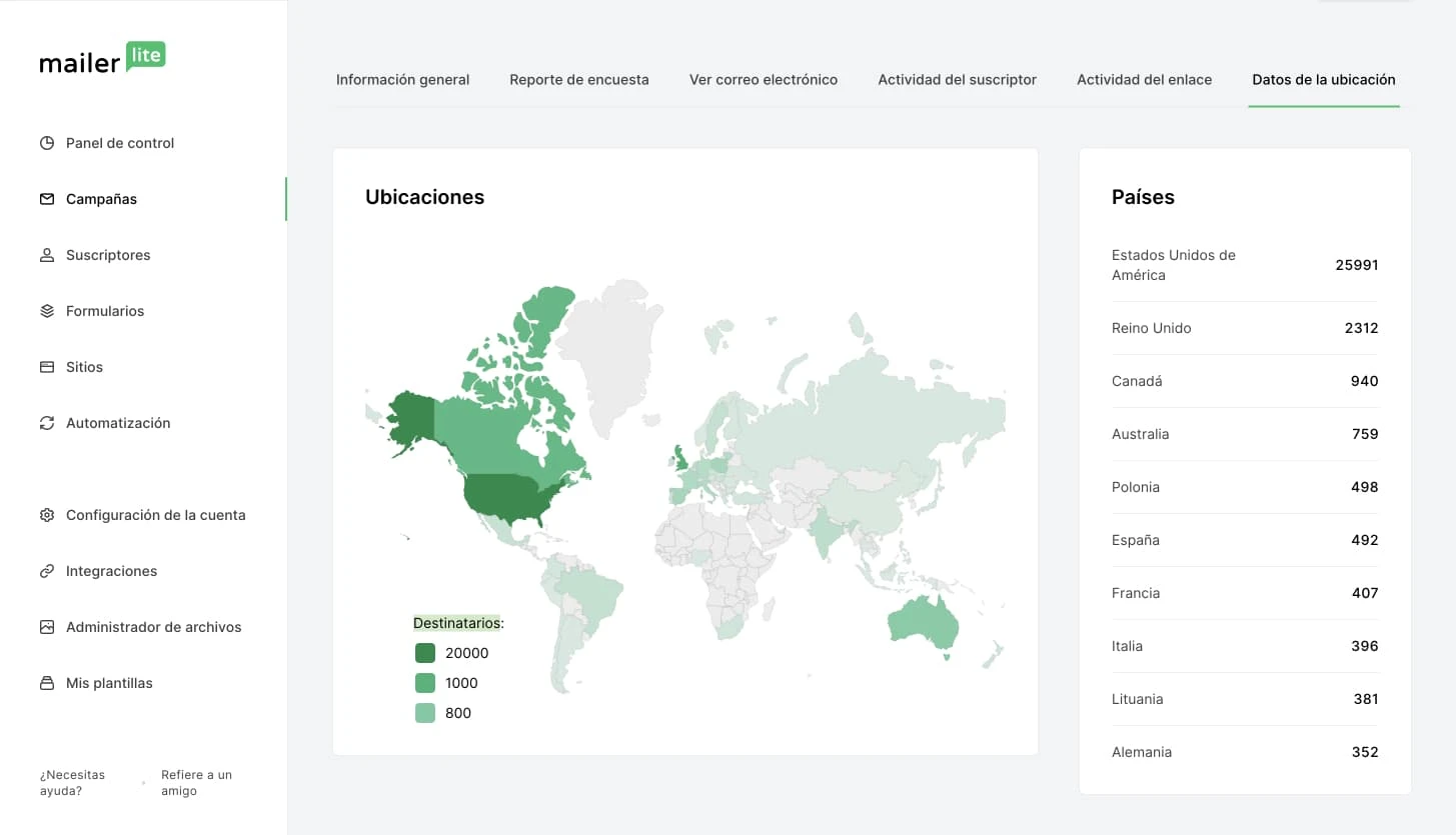 Cuando creas campañas de correo electrónico, sitios web y landing page con MailerLite, puedes agregar fácilmente tu código personalizado de Google Analytics en la configuración.
