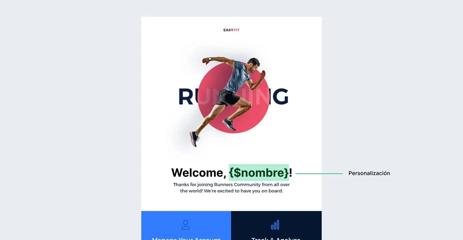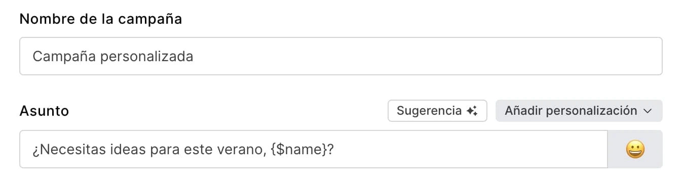 En lugar de enviar un correo electrónico con un saludo genérico como "Hola", simplemente puedes escribir "Hola {$name}" y cada correo electrónico se completará con el nombre de la persona real (siempre que tenga los nombres de los suscriptores en sus campos personalizados).