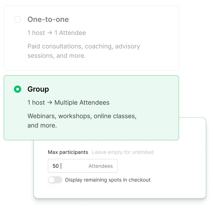 From discovery calls to paid consulting upsells, you’ve got all your booking options covered.