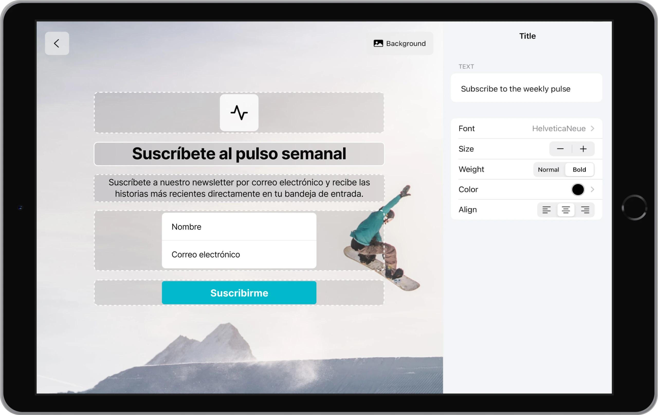 Create subscriber forms for your iPad to match your desired look and feel. You can change the background, fonts, colors, and add your messaging.
