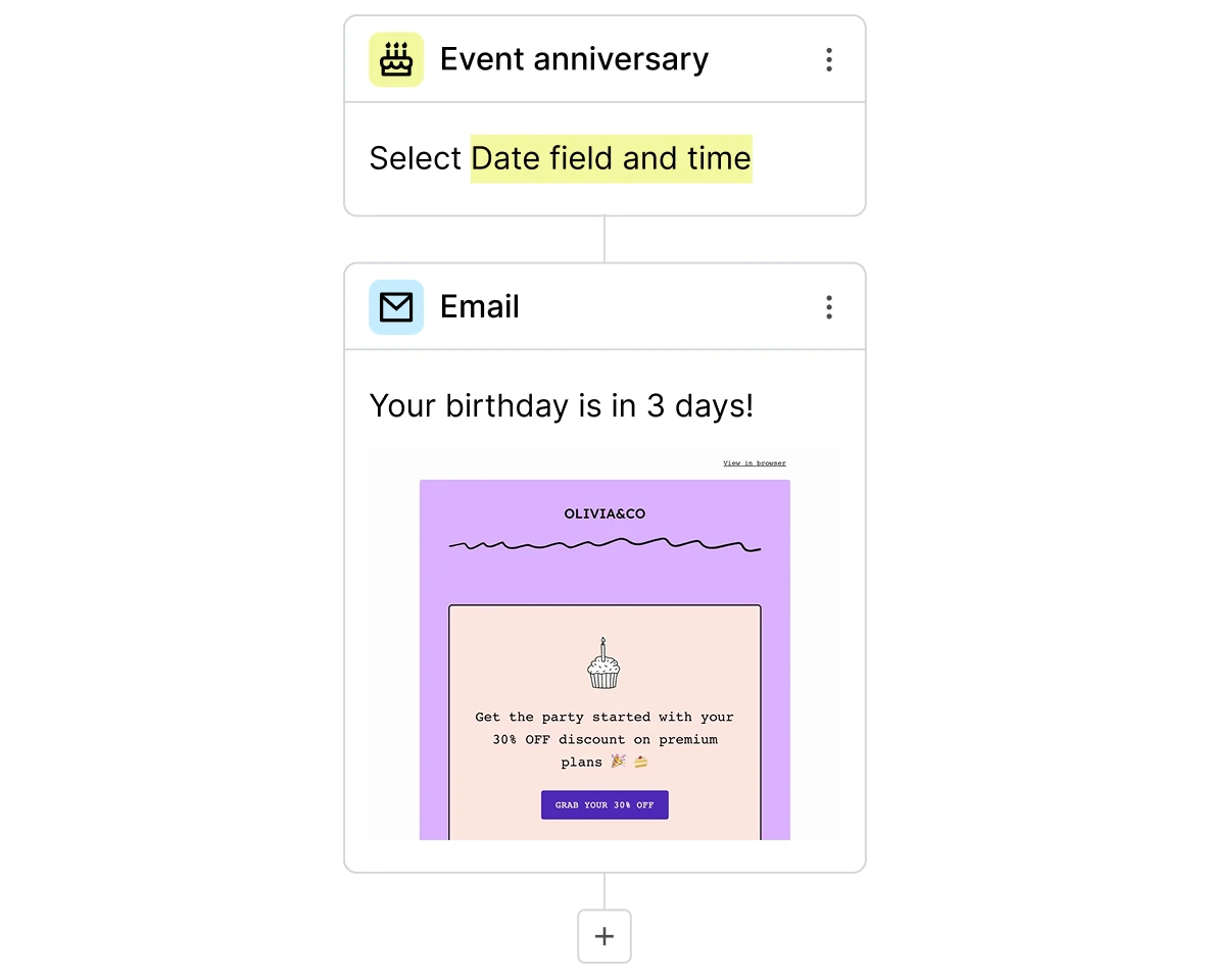 MailerLite allows you to create and automate various types of personal emails like birthday greetings, date-based campaigns and re-engagement emails based on your subscribers’ behaviors.