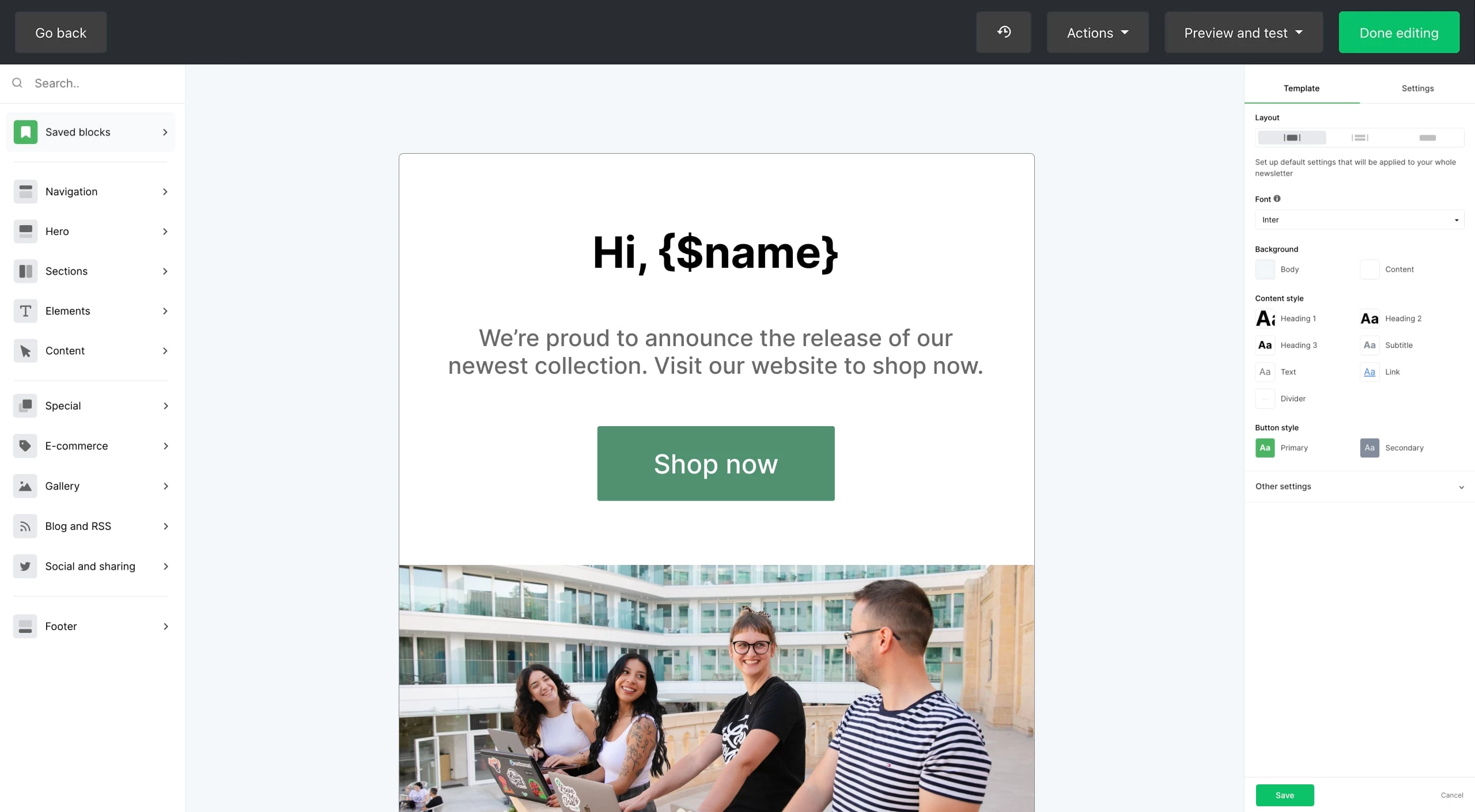 Personalization doesn't end with custom fields. You can add more personal touches by using our dynamic content blocks, your real name and return address, scheduled sending times and segmentation.