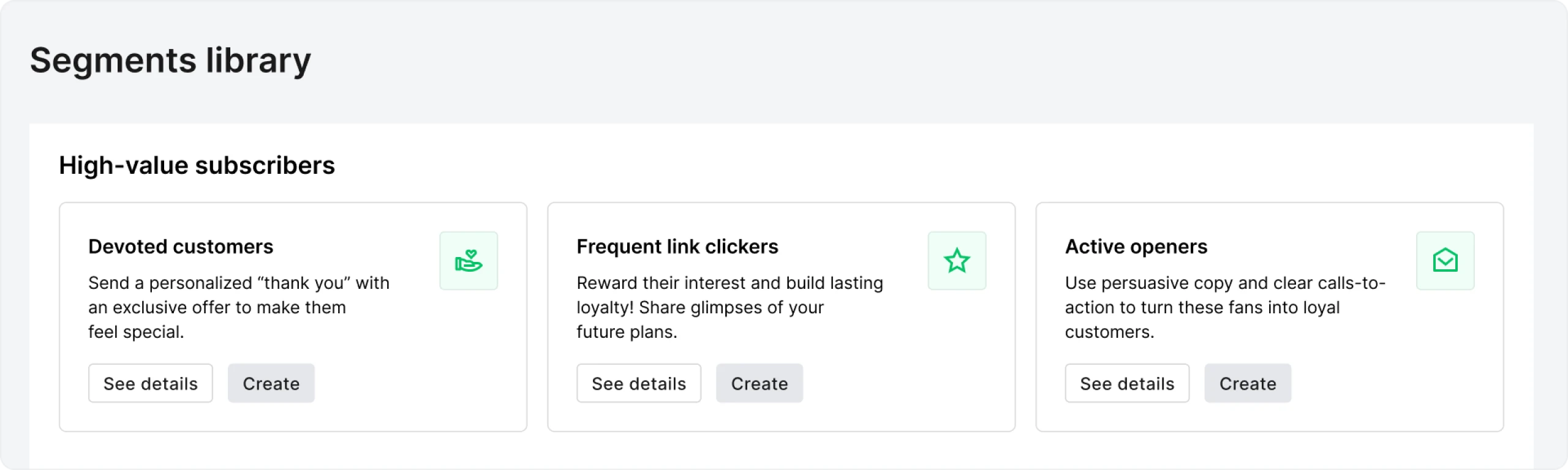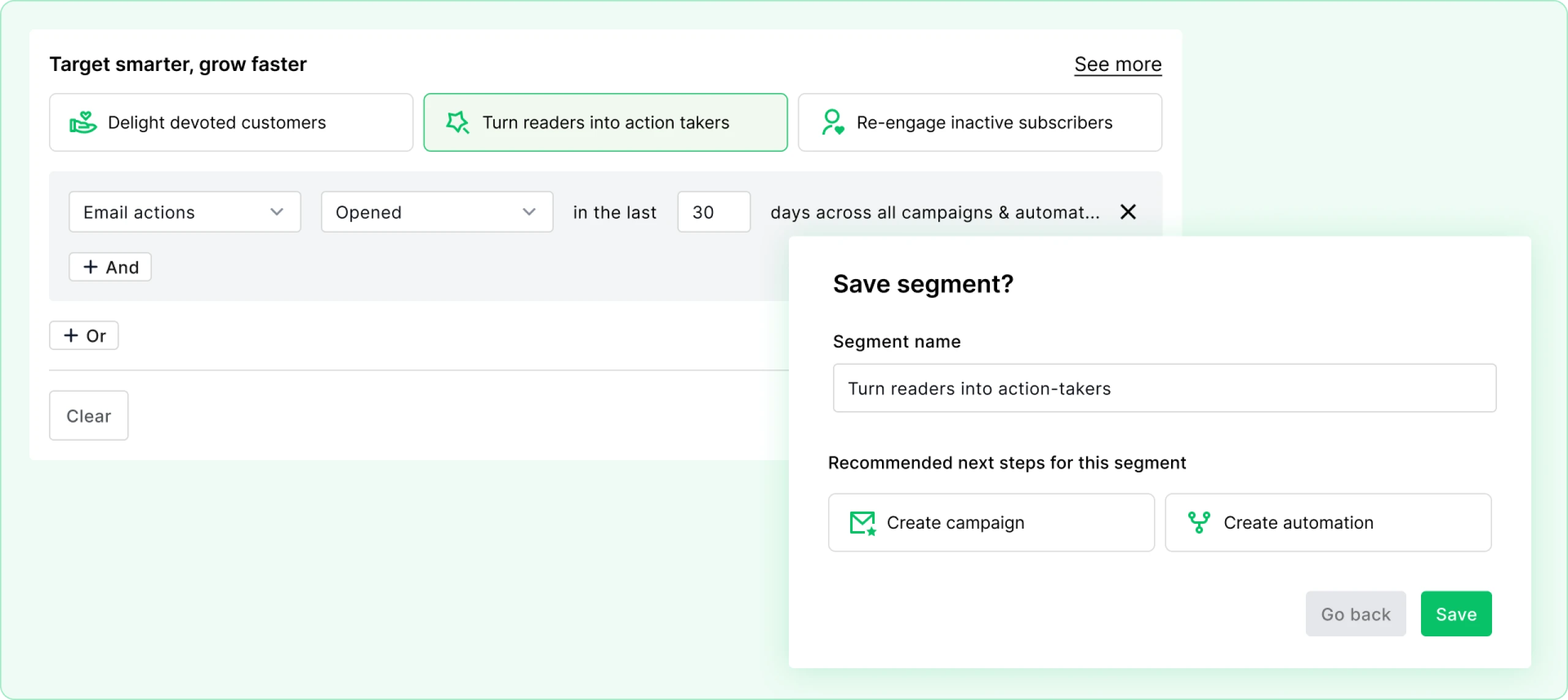 Filter subscribers based on engagement to send exclusive deals to loyal readers and re-engagement emails to inactive subscribers.
