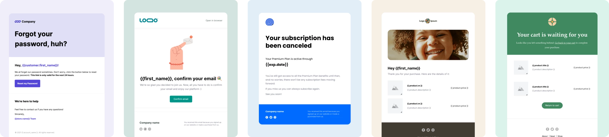 Choose from the rich gallery of professionally designed templates for all your transactional email needs. Easily build and edit templates with user-friendly drag & drop, rich-text and HTML email builders.
