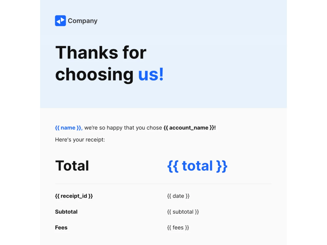 Send personalized transactional messages to your entire customer base with a single email template. Easily populate emails with dynamic data such as order details, customer information and account activity