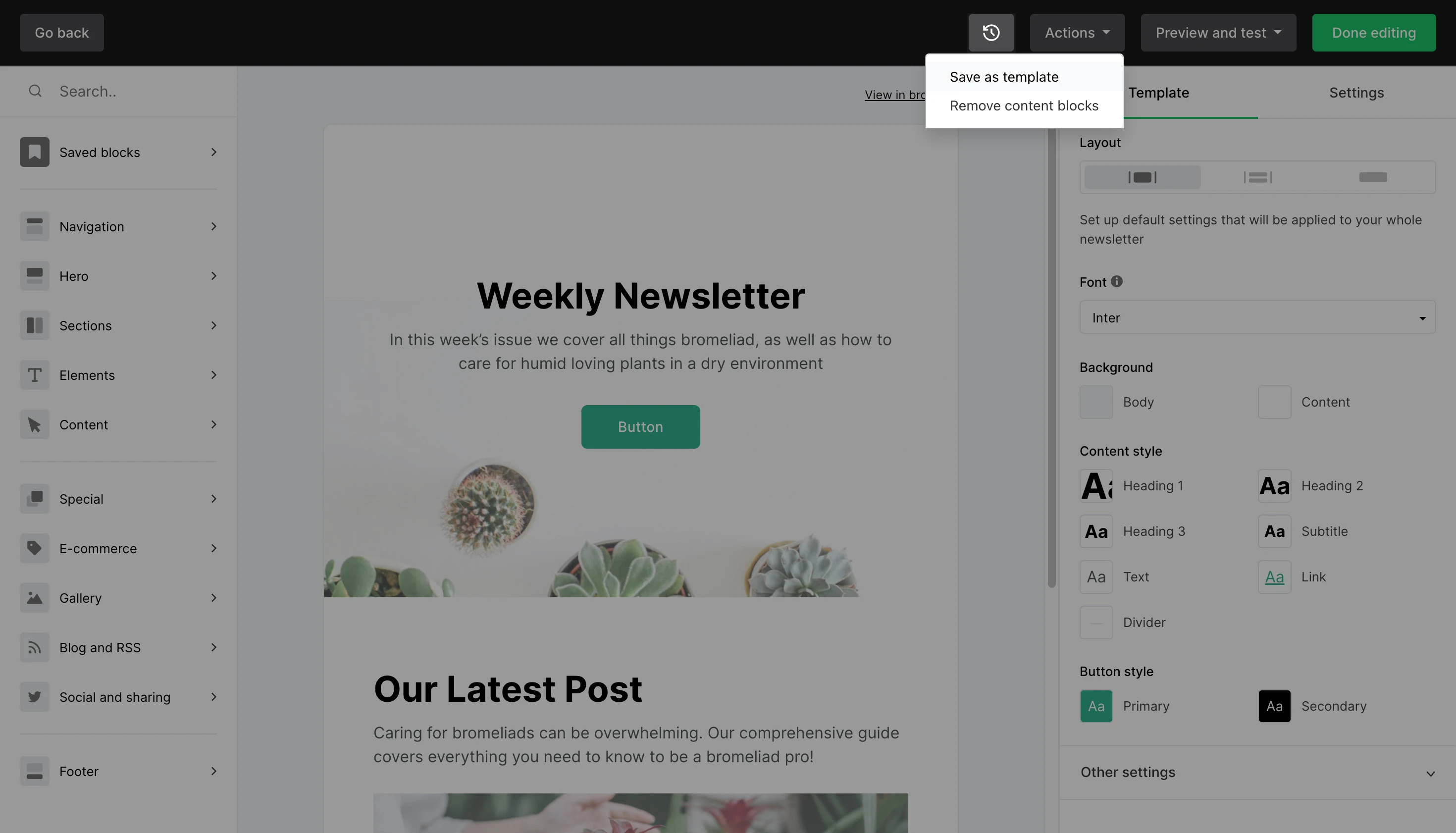 If you’re already working on a campaign or automation email and you decide you’d like to save it as a template, you can do so from within your campaign editor.