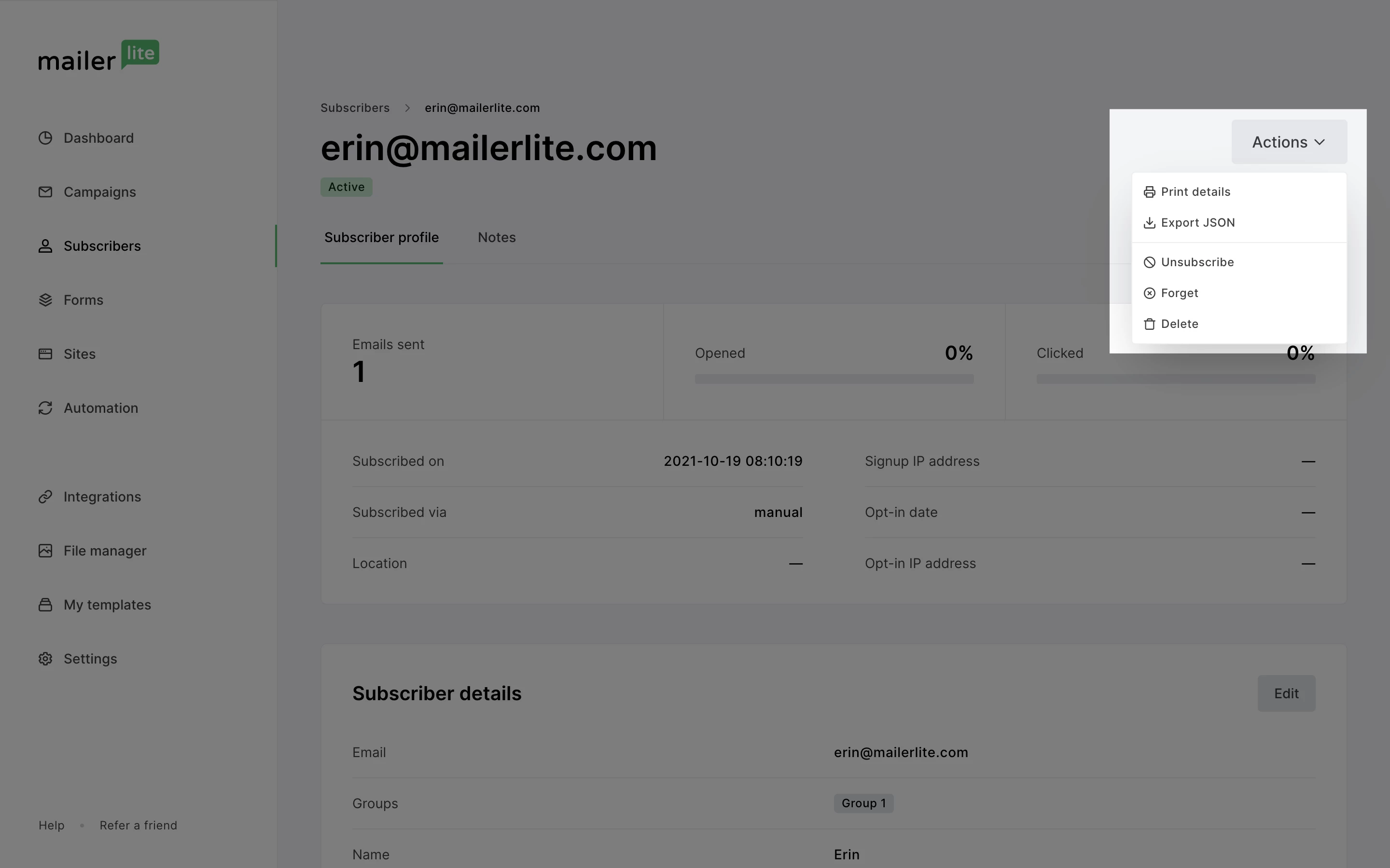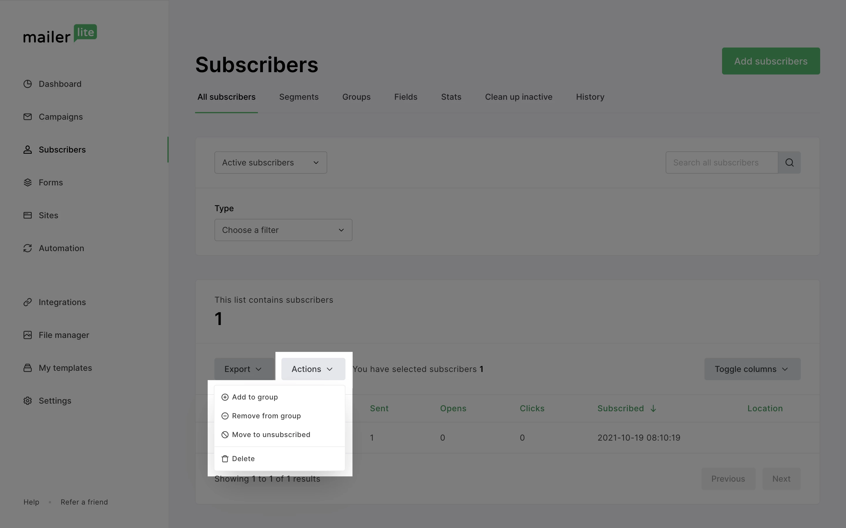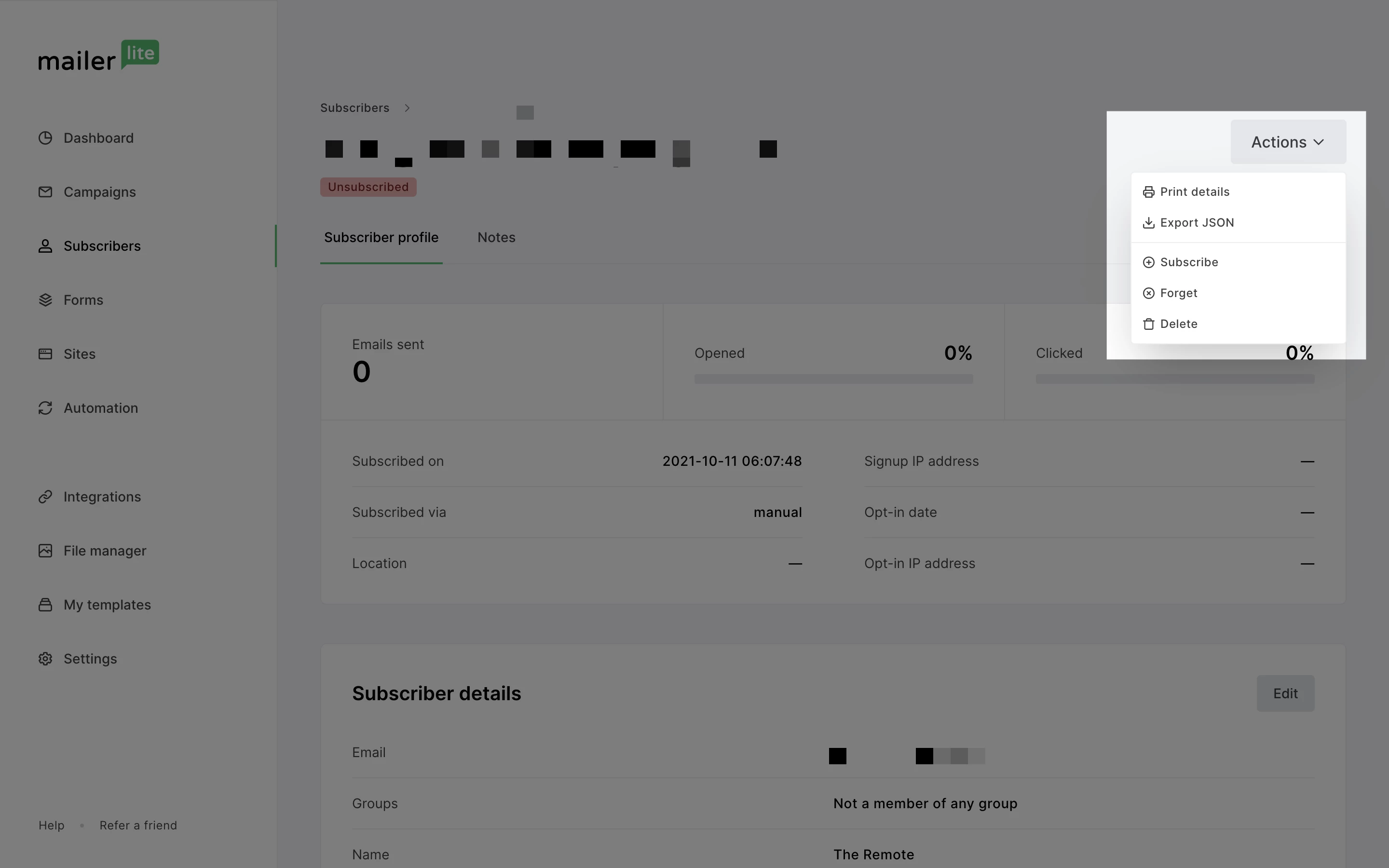 That’s it! The subscriber is now moved to Unsubscribed and newsletters won’t be sent to that email address anymore.