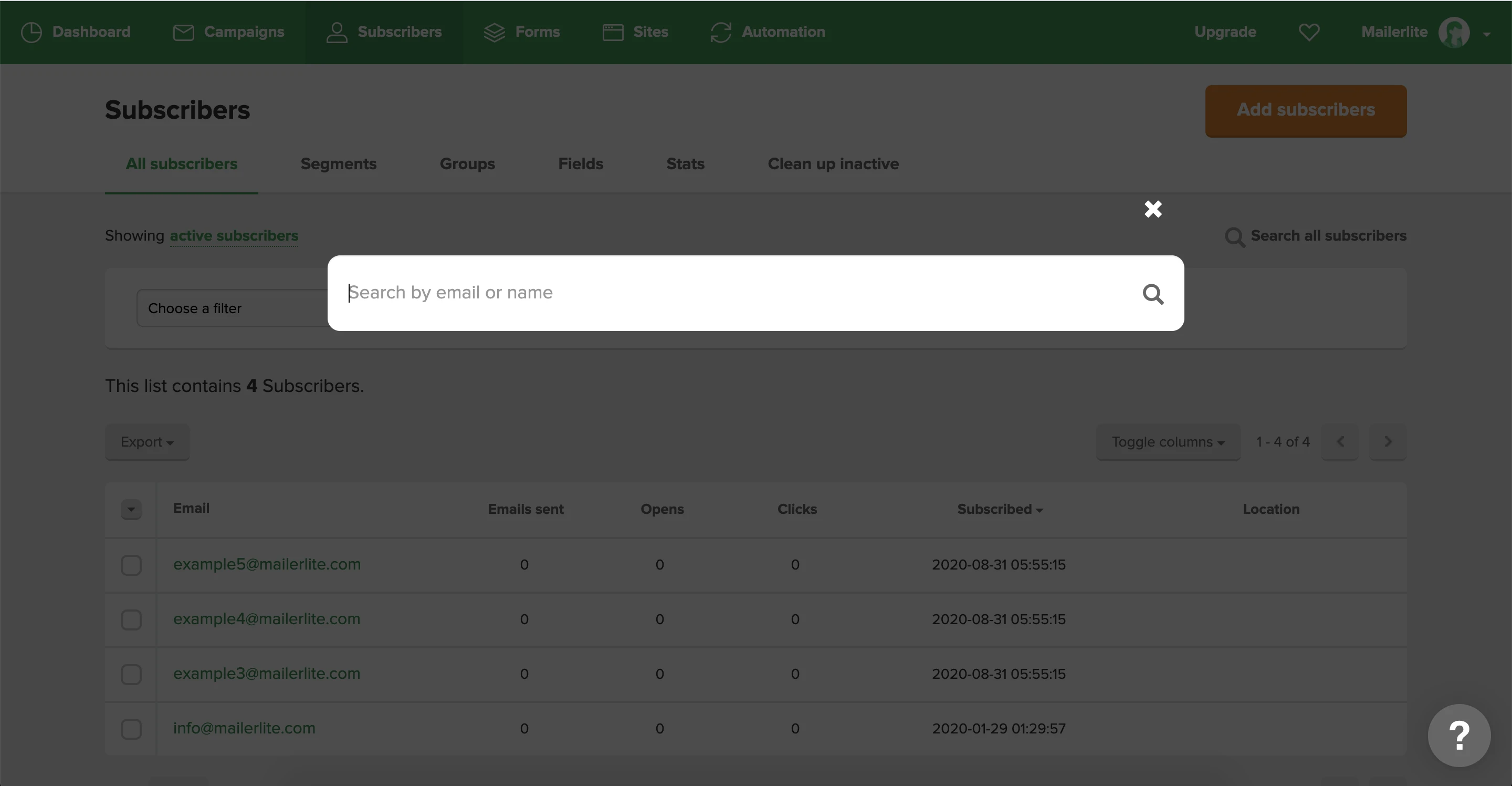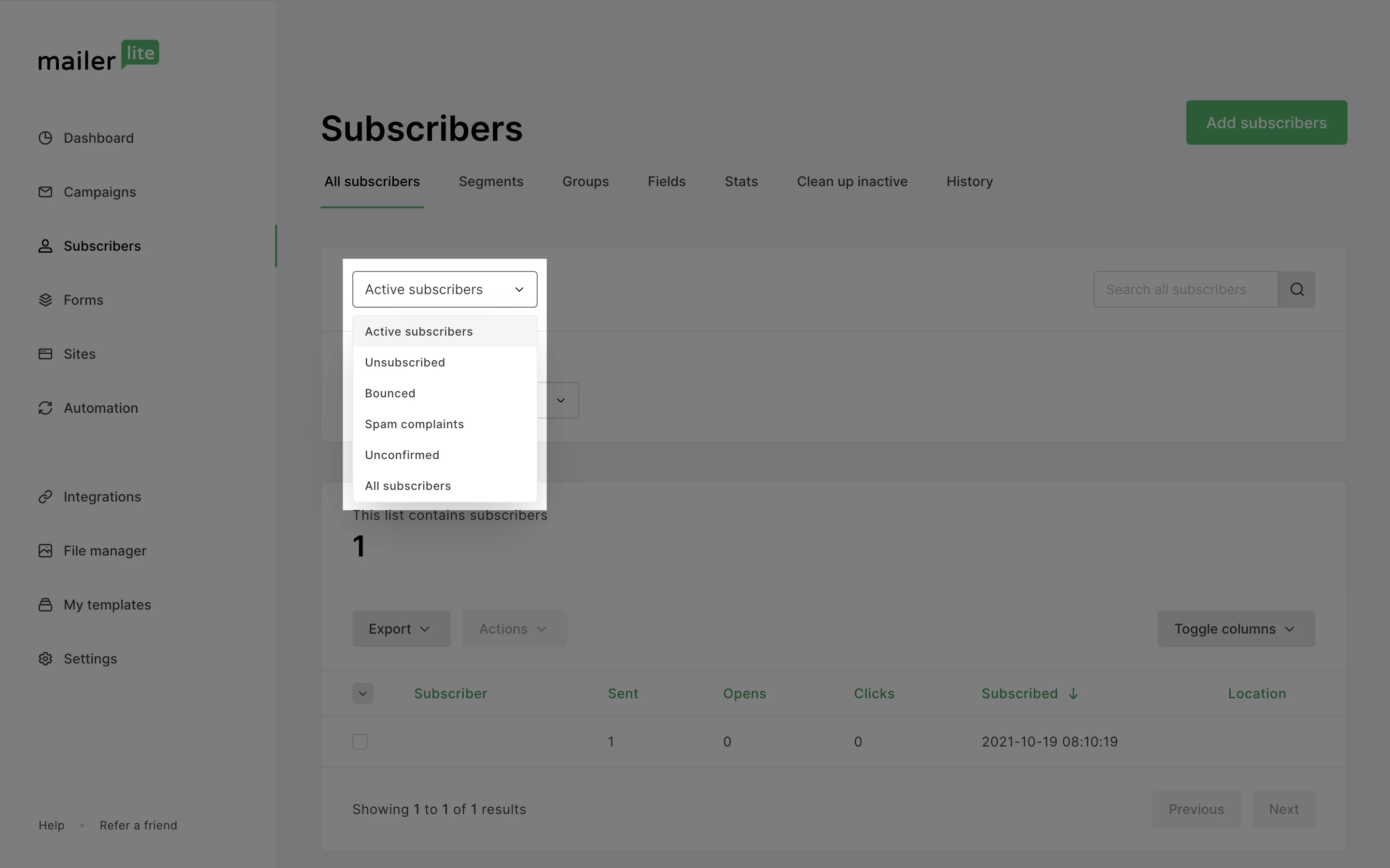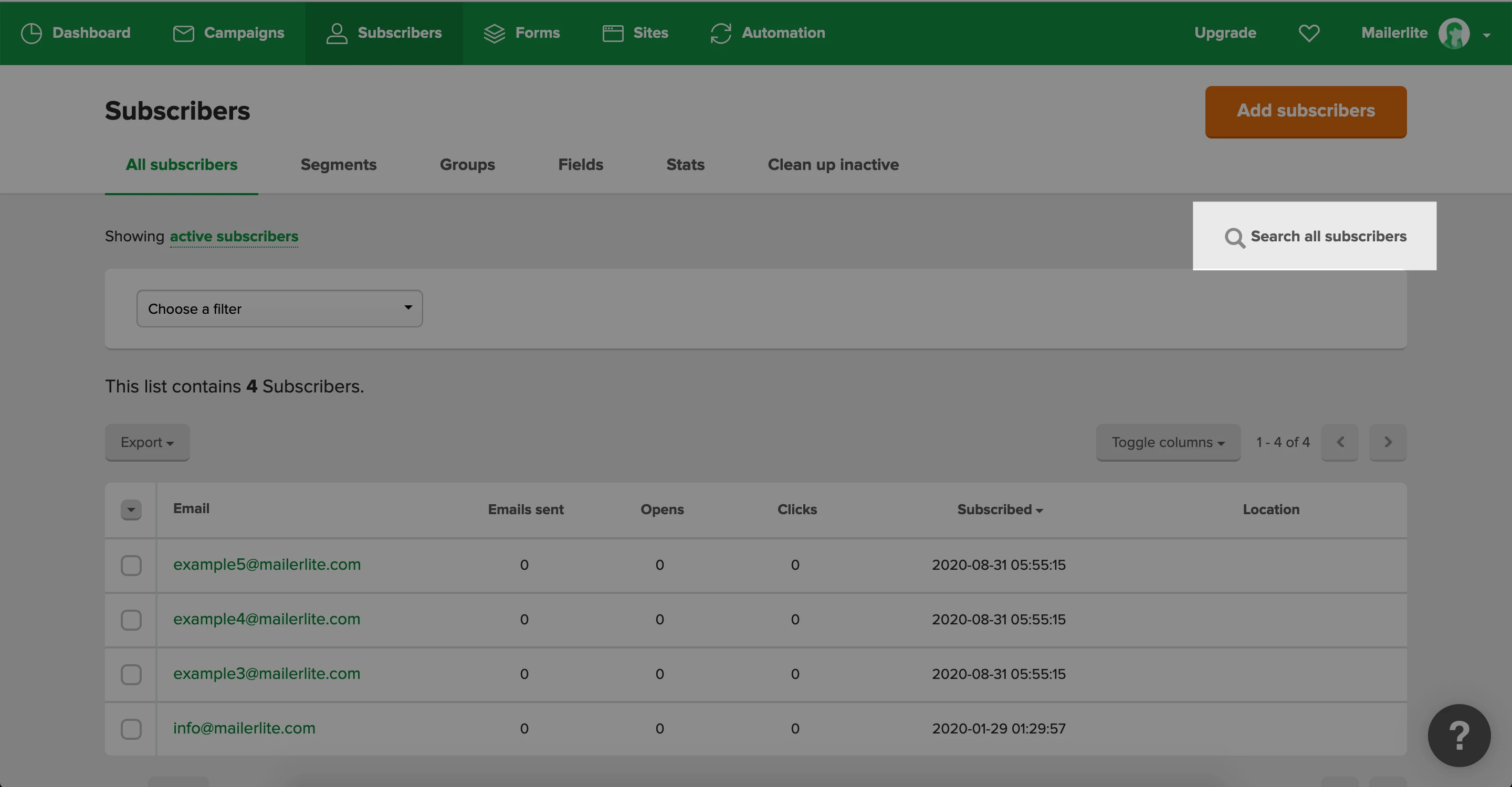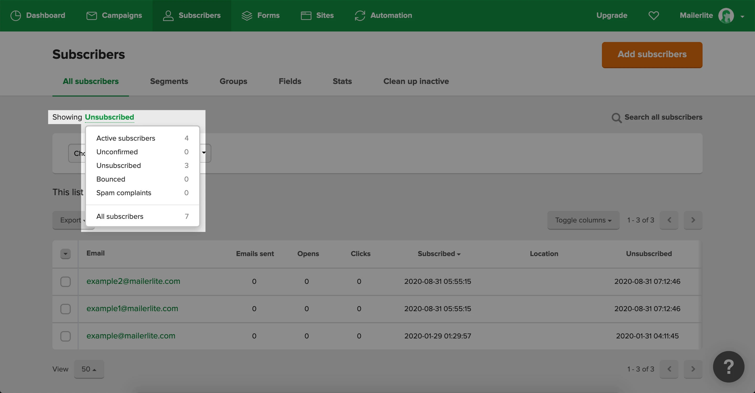 If you need to, use a filter to search and find the subscribers you want to unsubscribe.