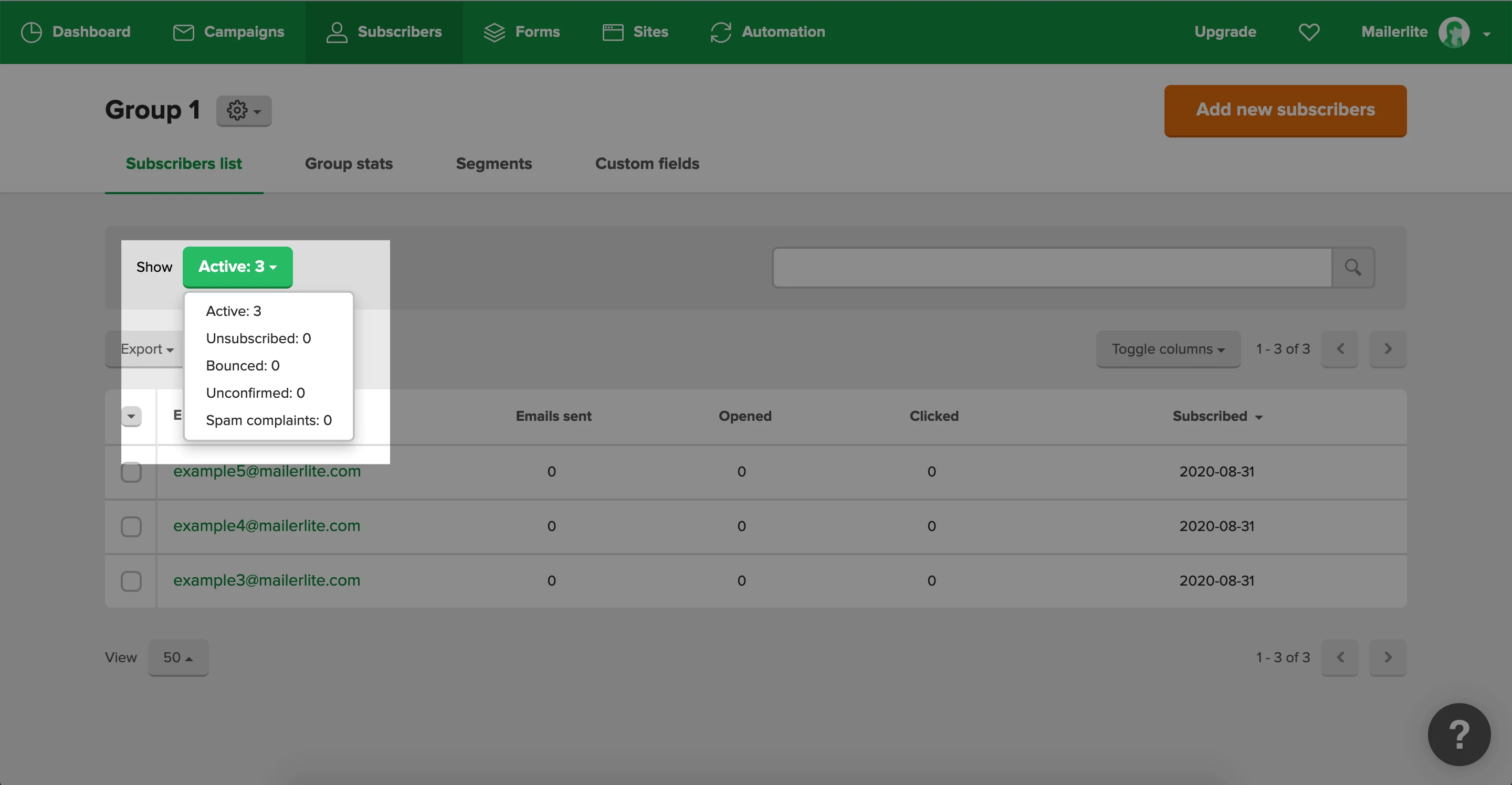 Note: You can’t activate unsubscribed recipients in bulk. If you have unsubscribed multiple subscribers by accident, please contact customer support.