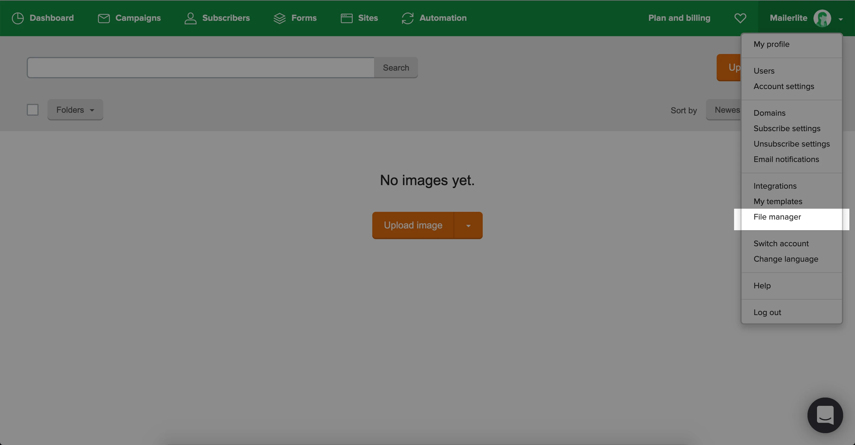 Your File manager is where you store all the images that you upload and use in your campaigns and forms. It can be found in your dashboard sidebar.