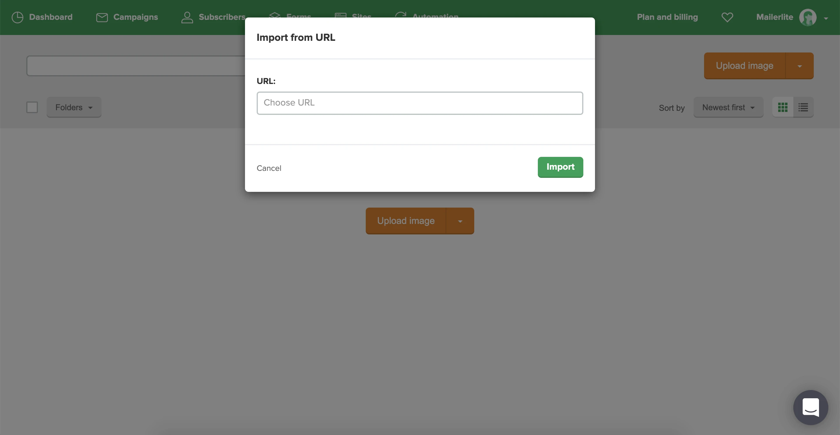 This will open your File manager. From here you can select an image you have already imported, or you can upload a new image to add to your newsletter.