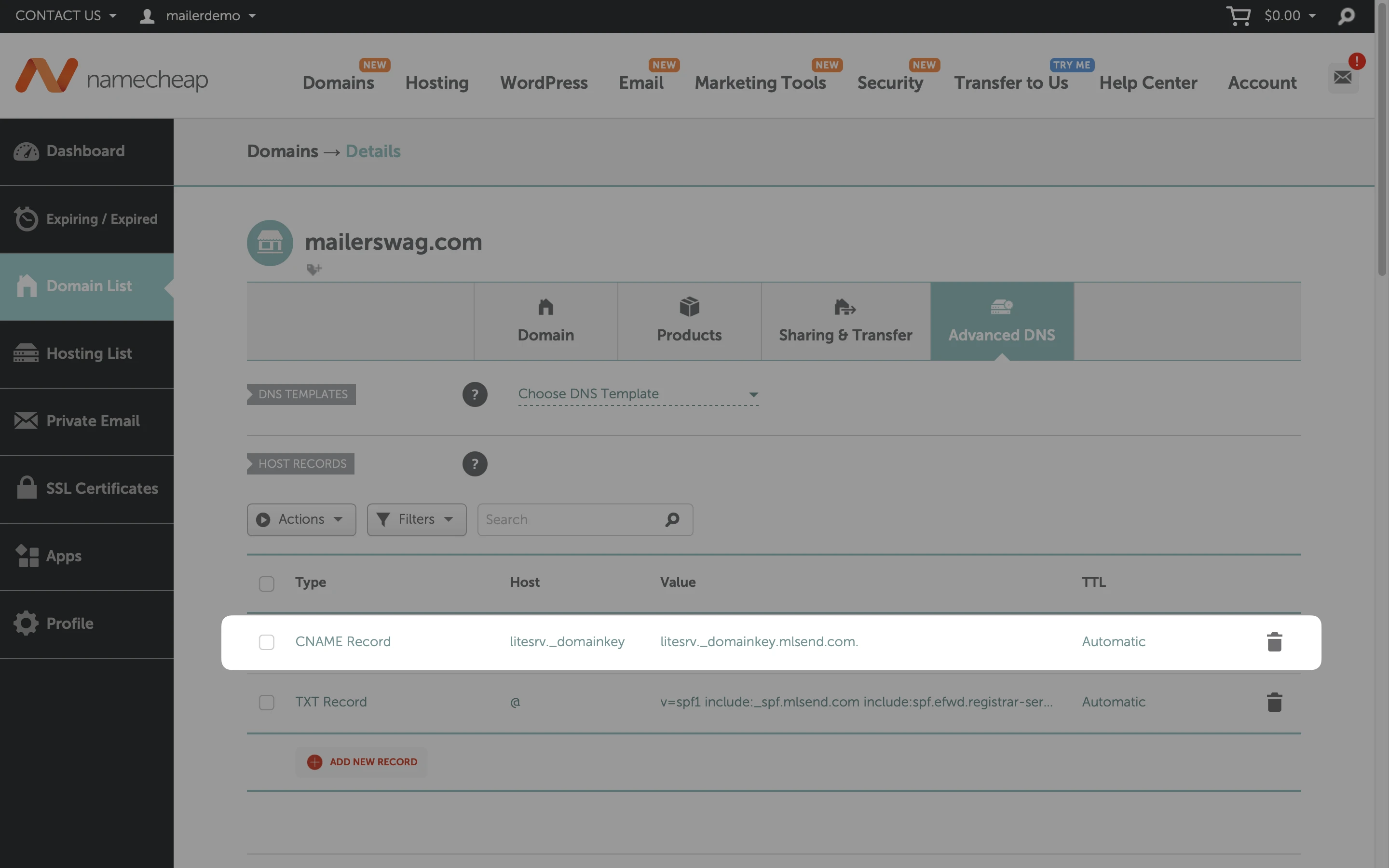 ⚠️ According to Namecheap’s documentation, it is only possible to set up TXT, SPF, DKIM and DMARC records in your Namecheap account if your domain is pointed to the BasicDNS, PremiumDNS or FreeDNS hosting.