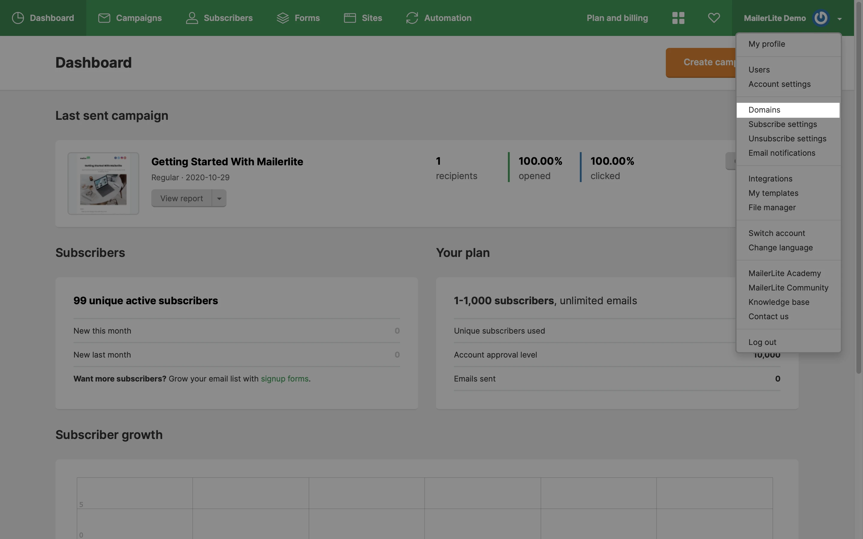 4. Once the DNS configuration is successful, you will be redirected back to MailerLite. Refresh the page to see the updated status of your domain.