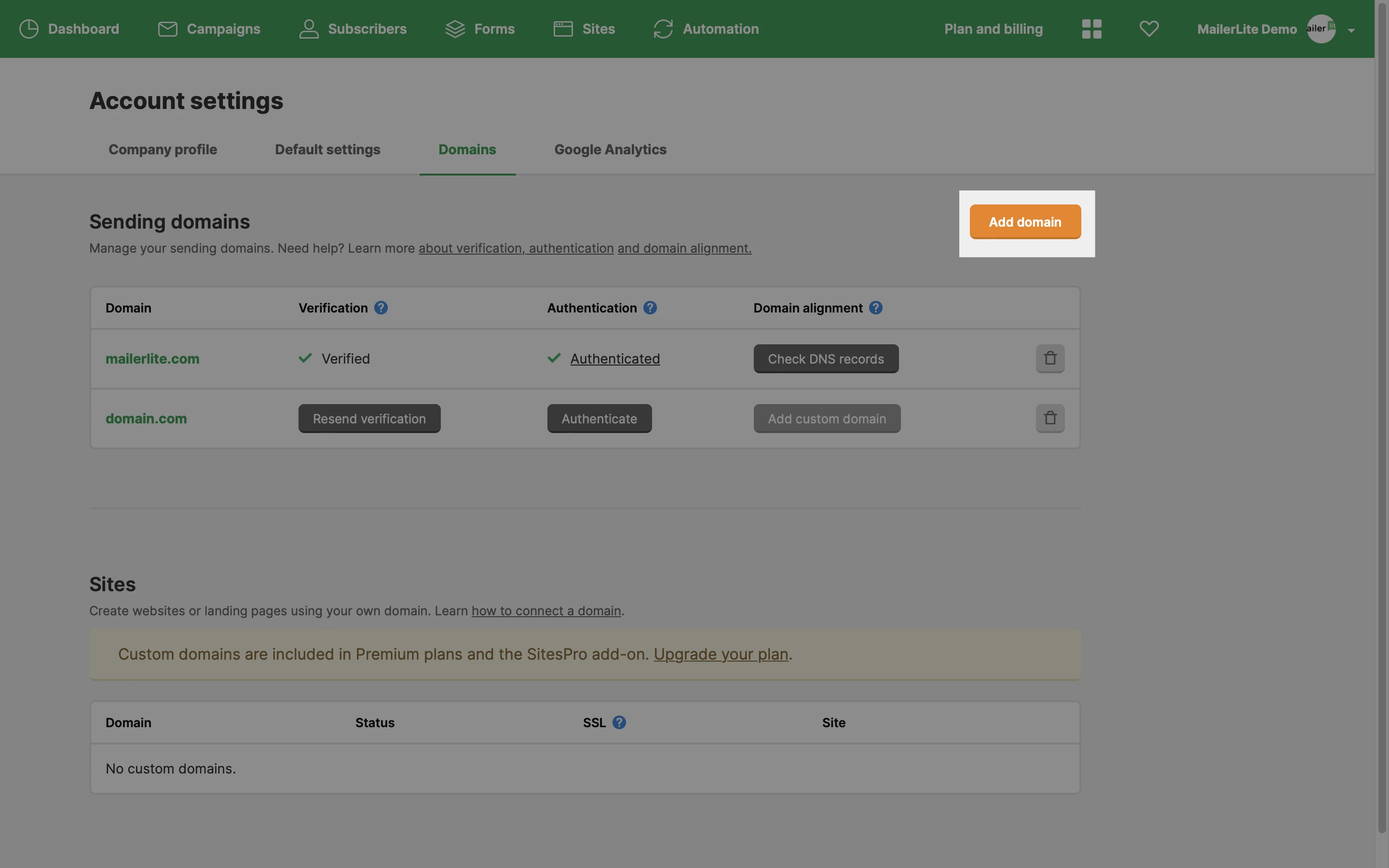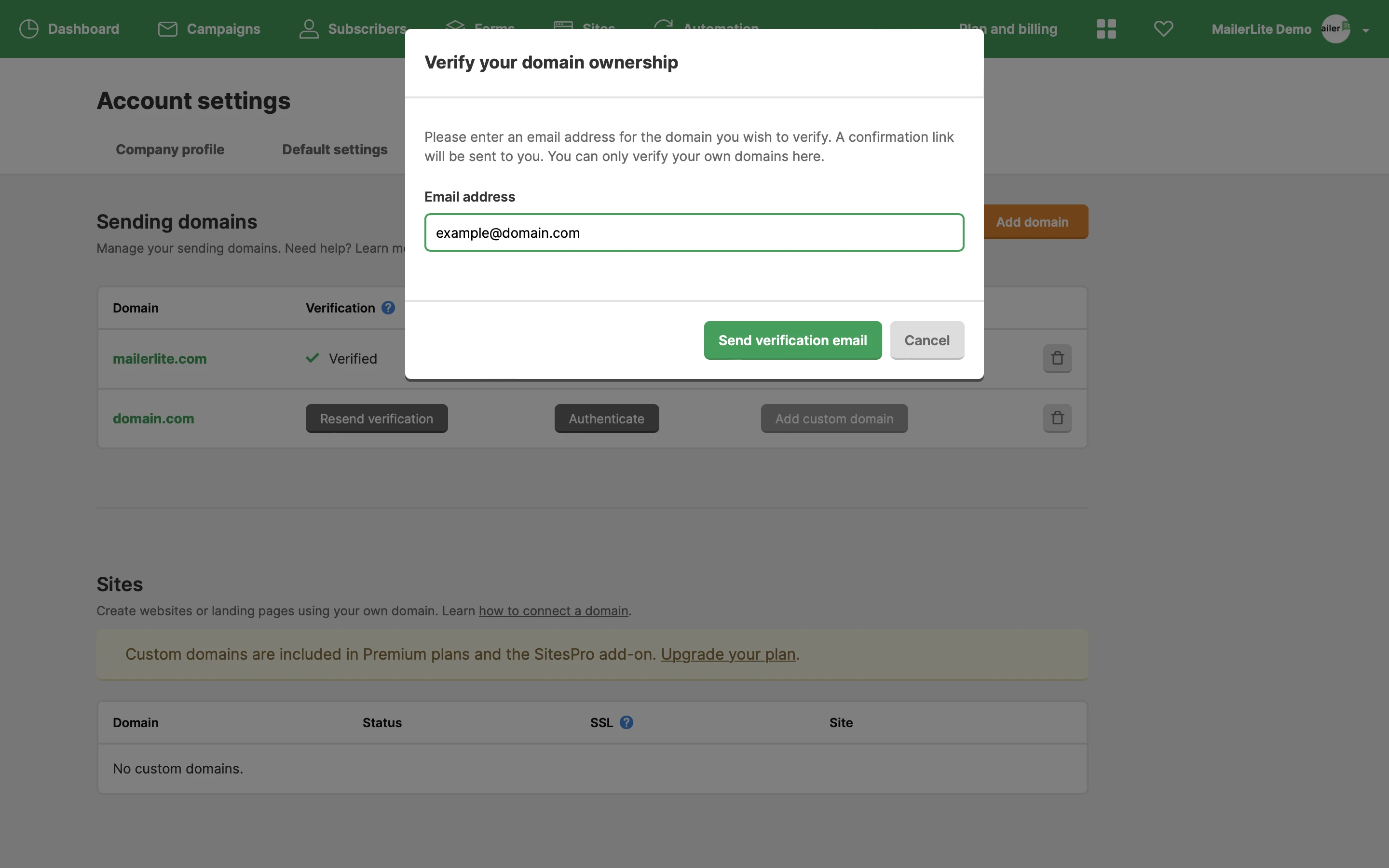 To verify that you are adding a domain that you own, enter an email address that includes your paid domain, which will be used to send campaigns.
