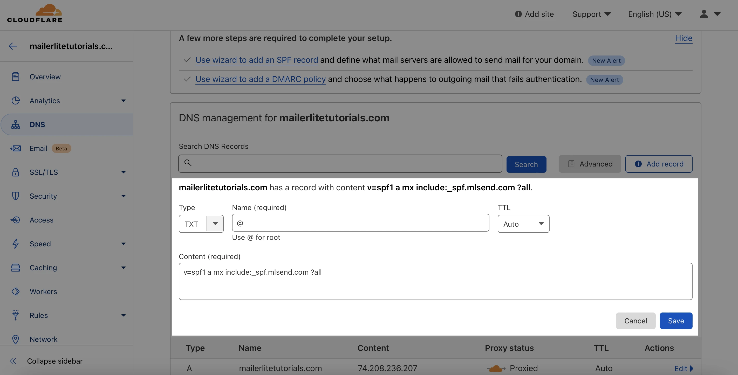 @.In the Content box, paste the SPF Value from your MailerLite account.