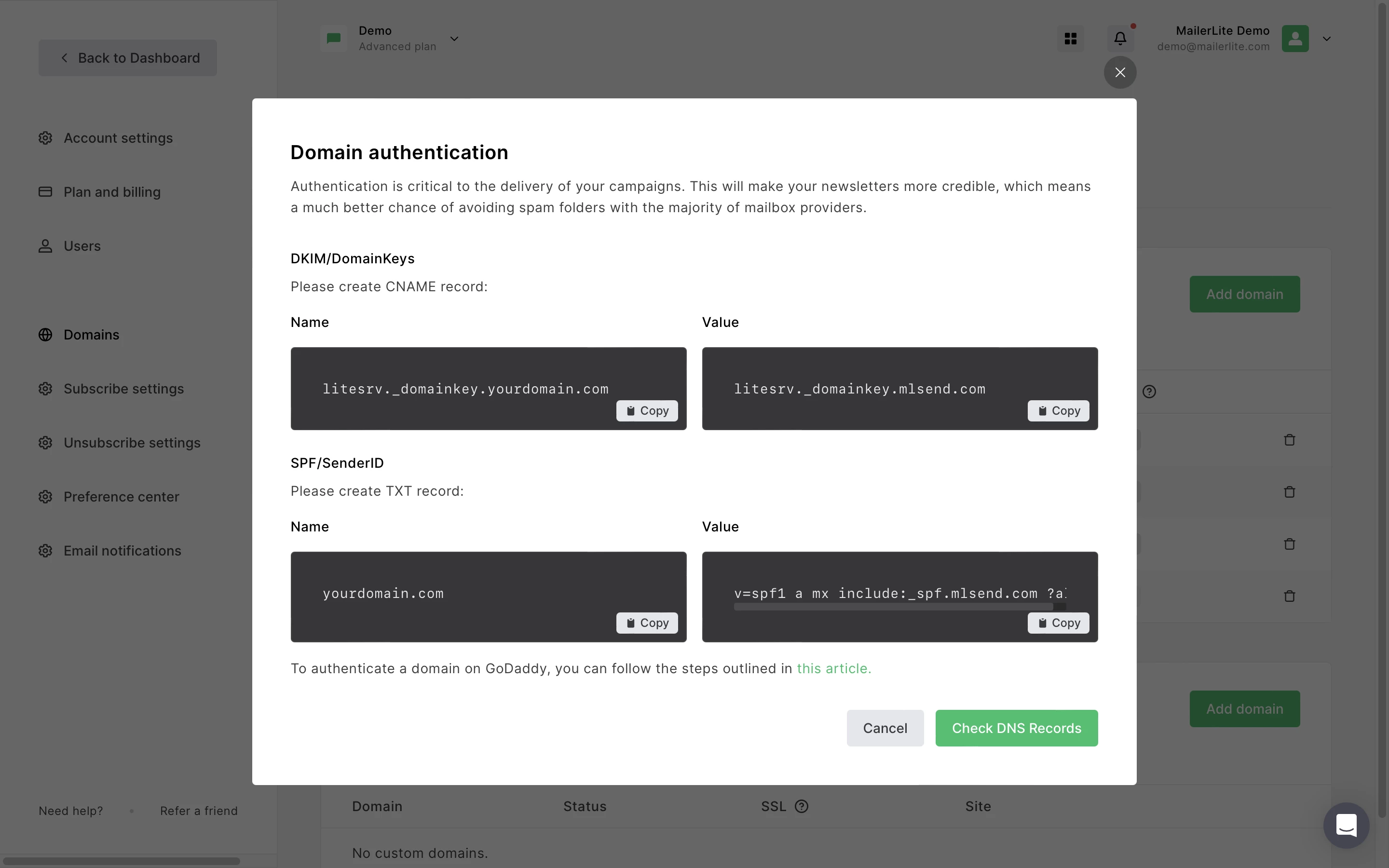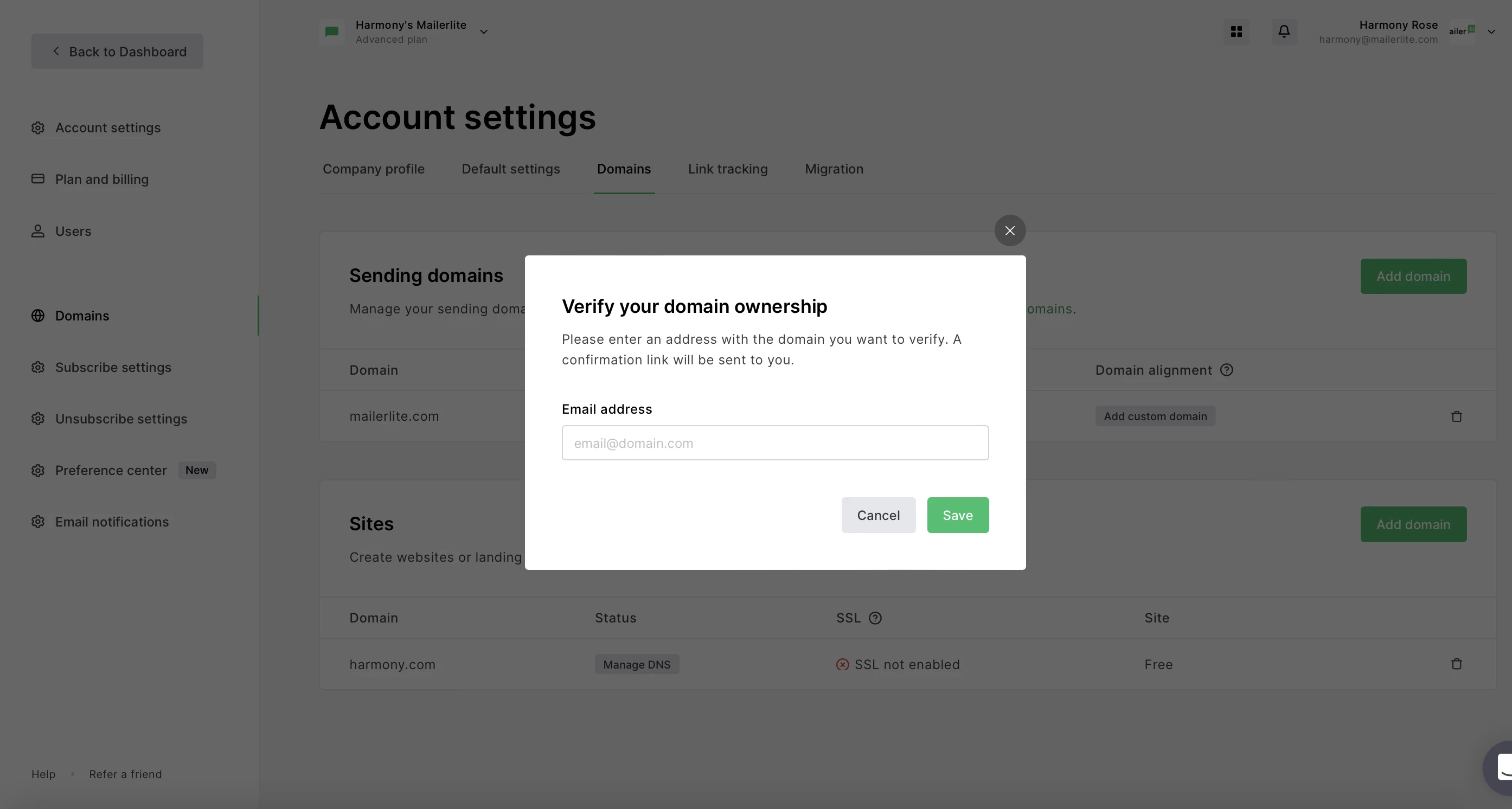 How to add a domain to MailerLite