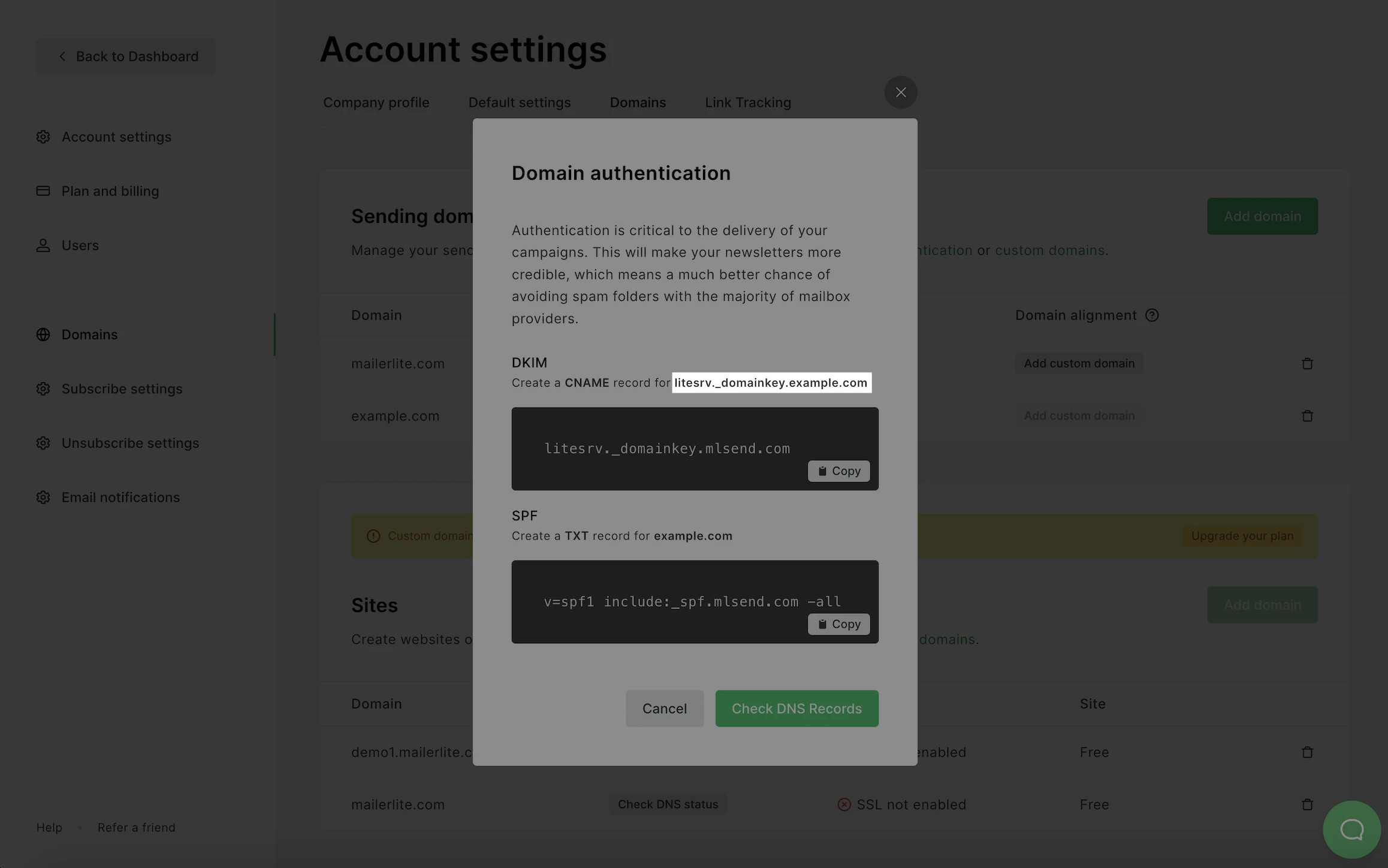 If you are using the Classic MailerLite, instructions for adding the DKIM record can be found here.