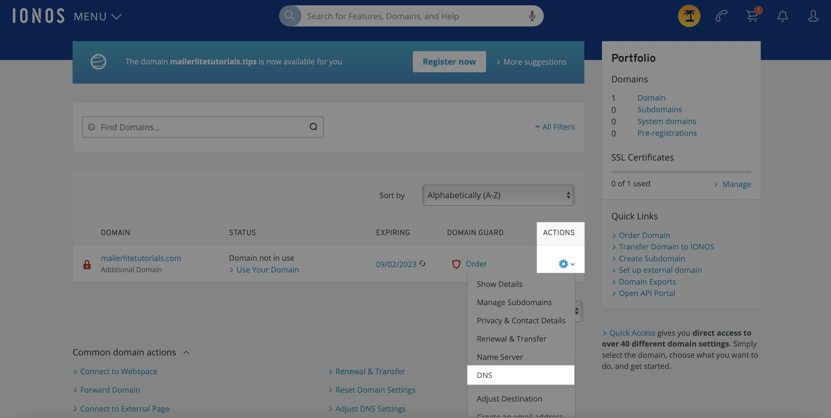 This article is meant for those who already successfully registered a domain with IONOS by 1&1.