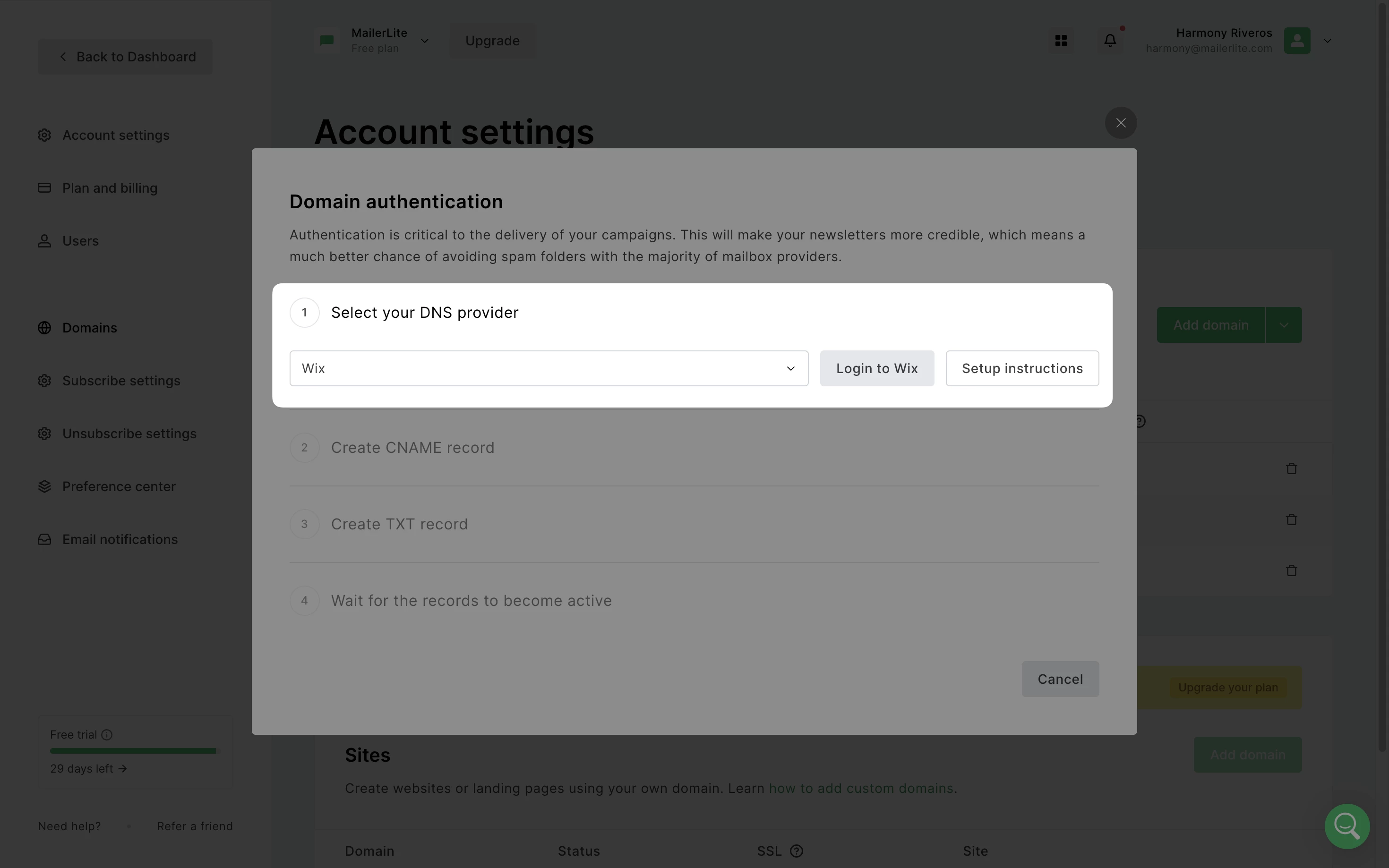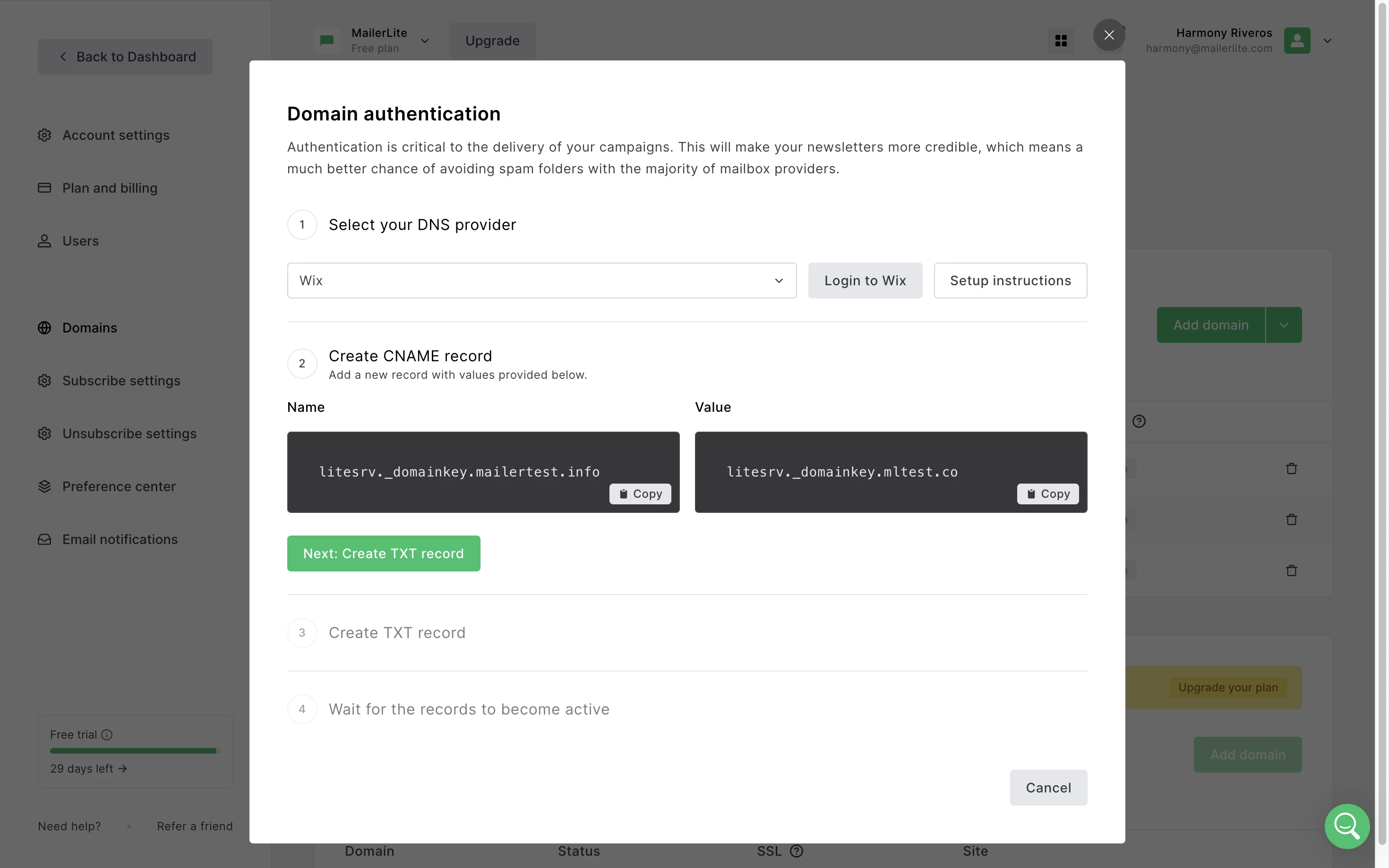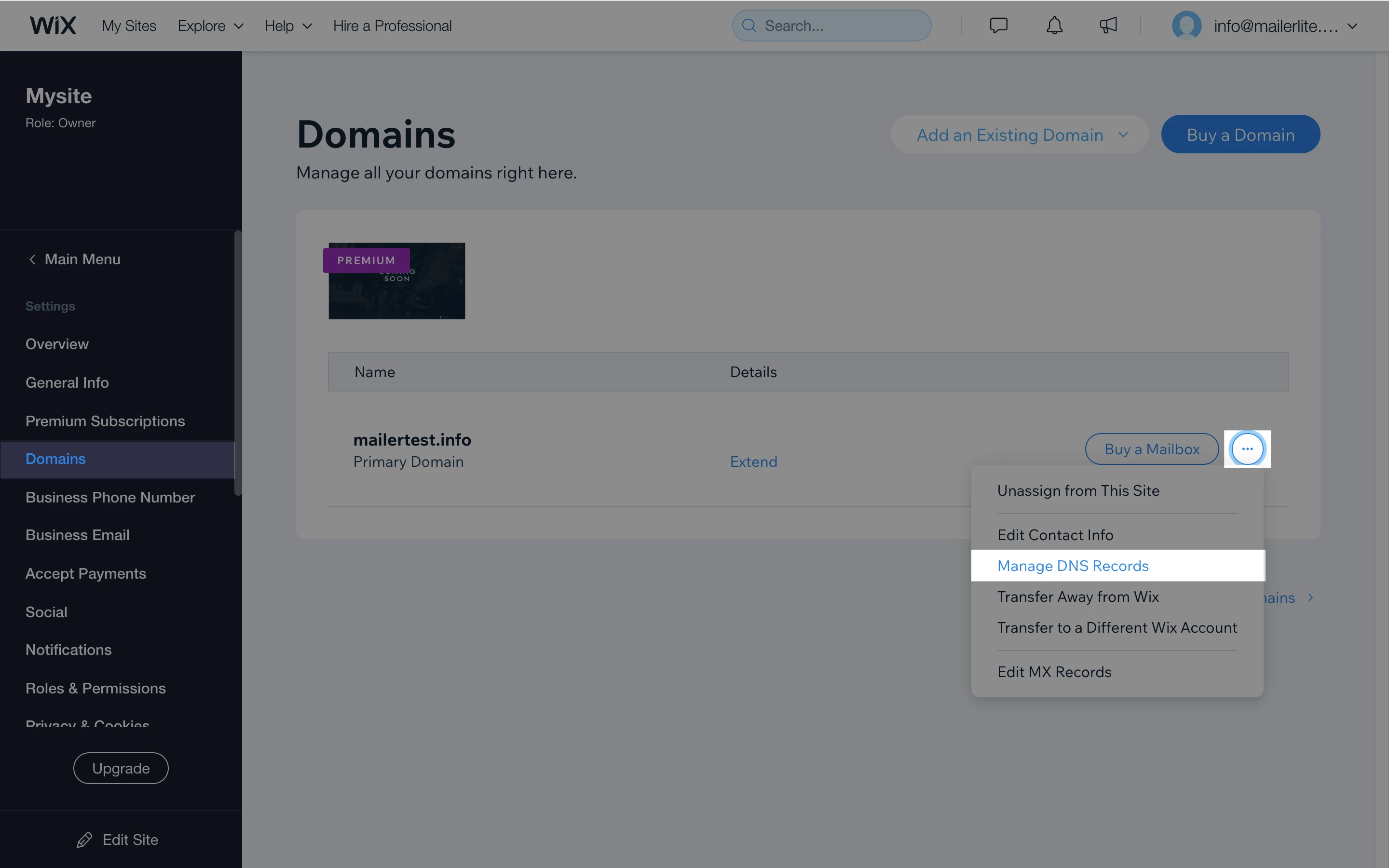 This article is meant for those who already have a domain successfully registered with Wix. You'll need this registration as long as you use the domain name, even when you authenticate it with MailerLite.