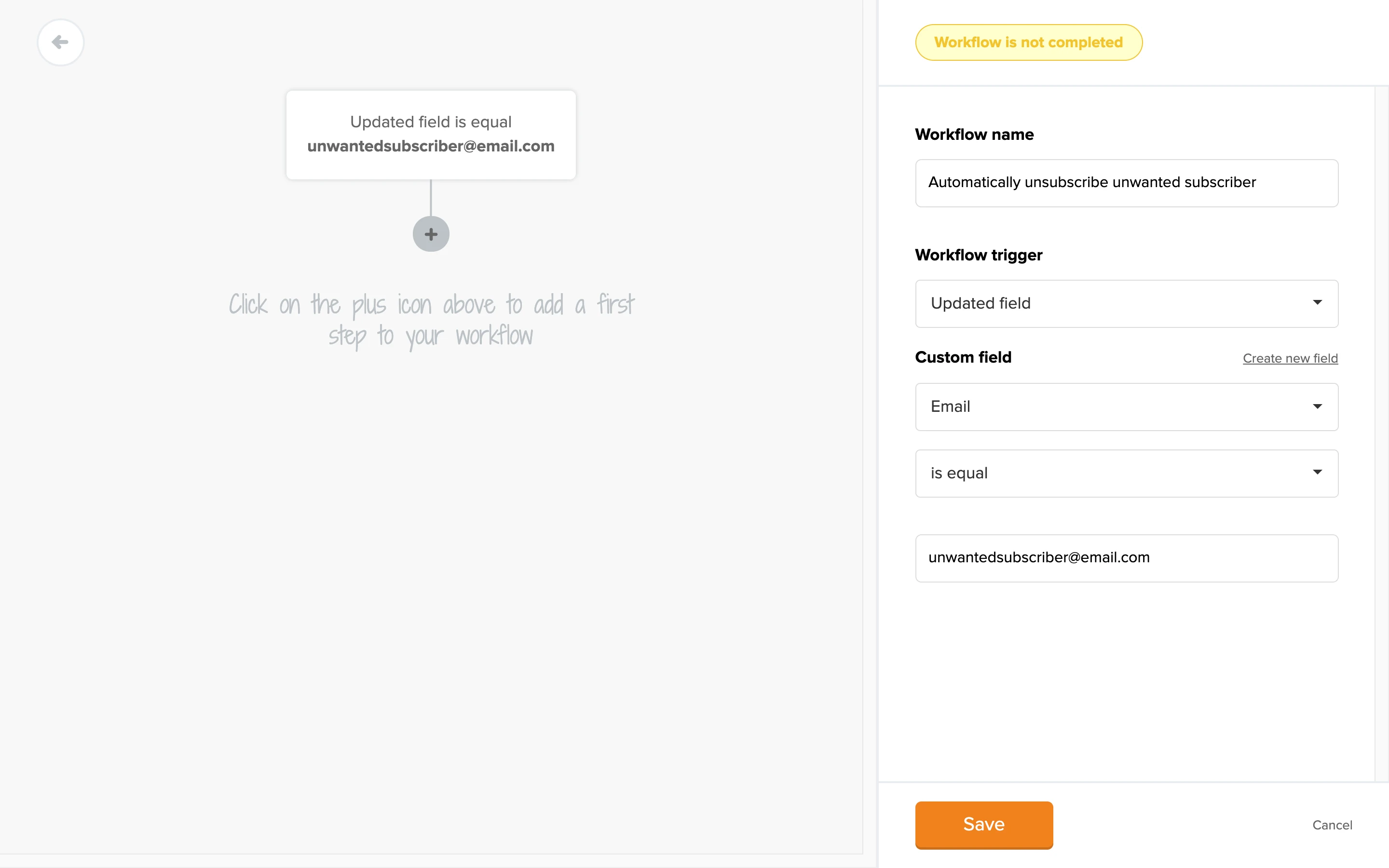 In the last field, enter the email address you don’t want to send newsletters to.