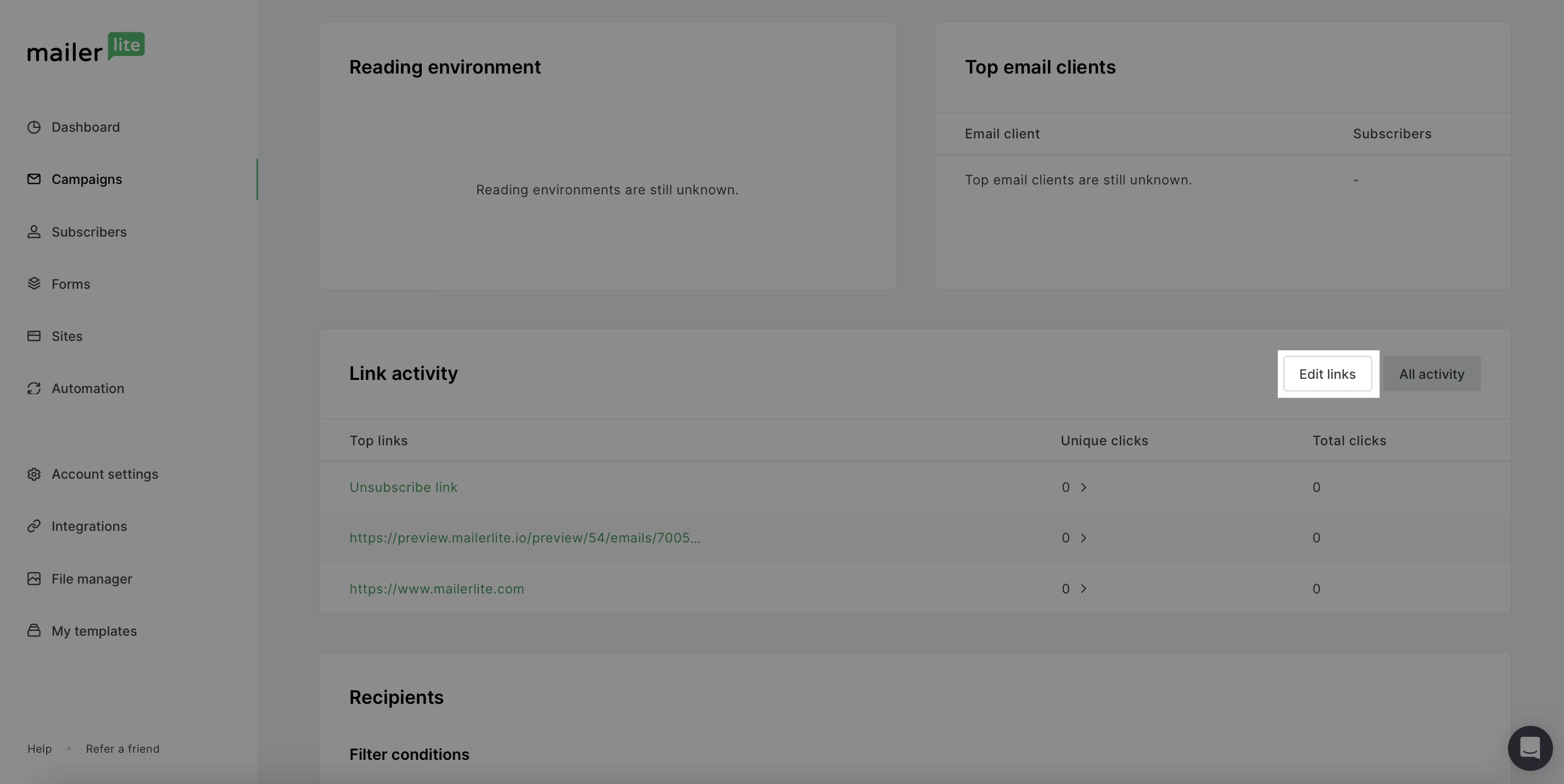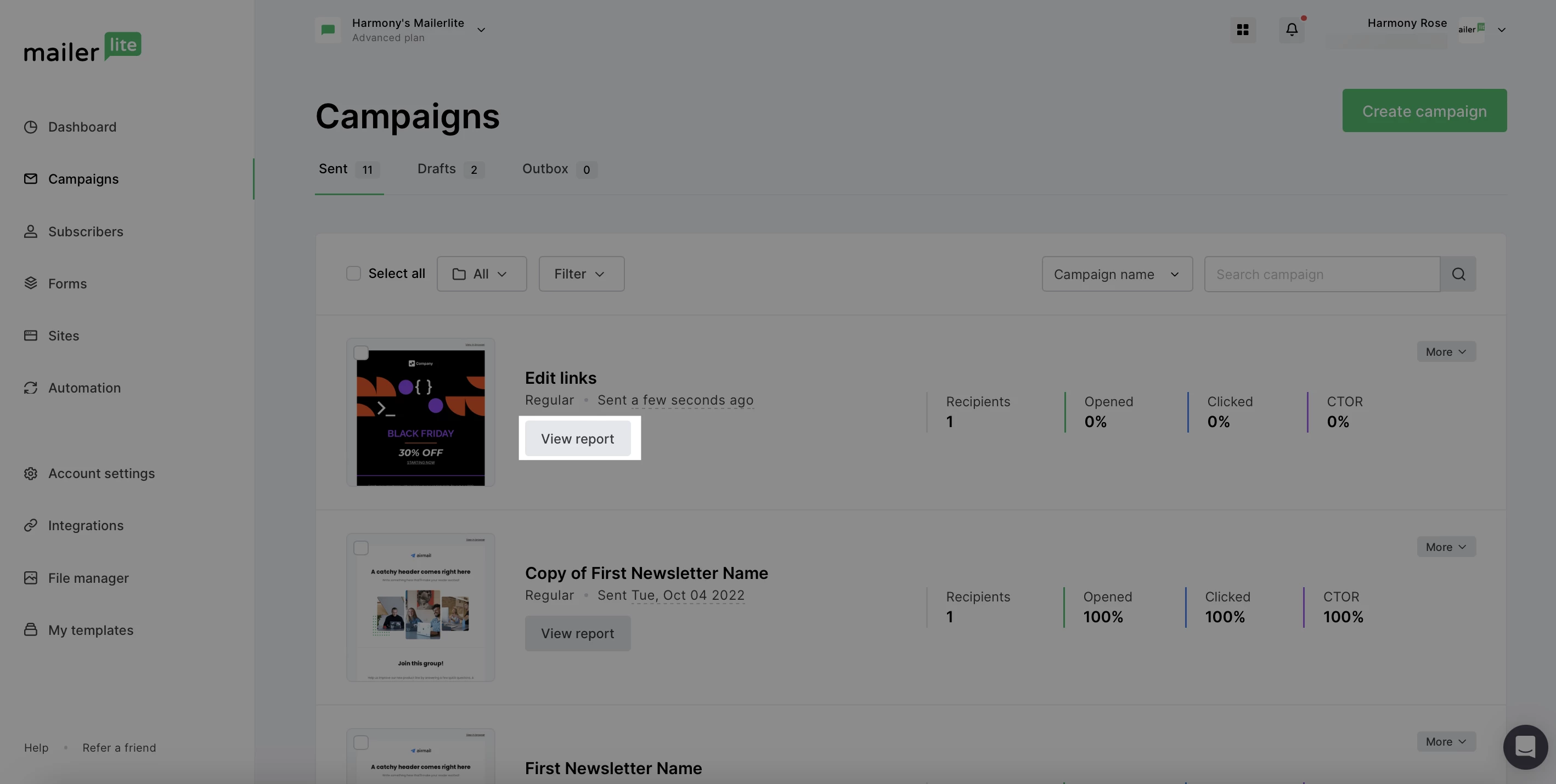Keep in mind, these instructions only apply for those using the new version of MailerLite on Growing Business or Advanced plans. To change a link in a sent campaign: