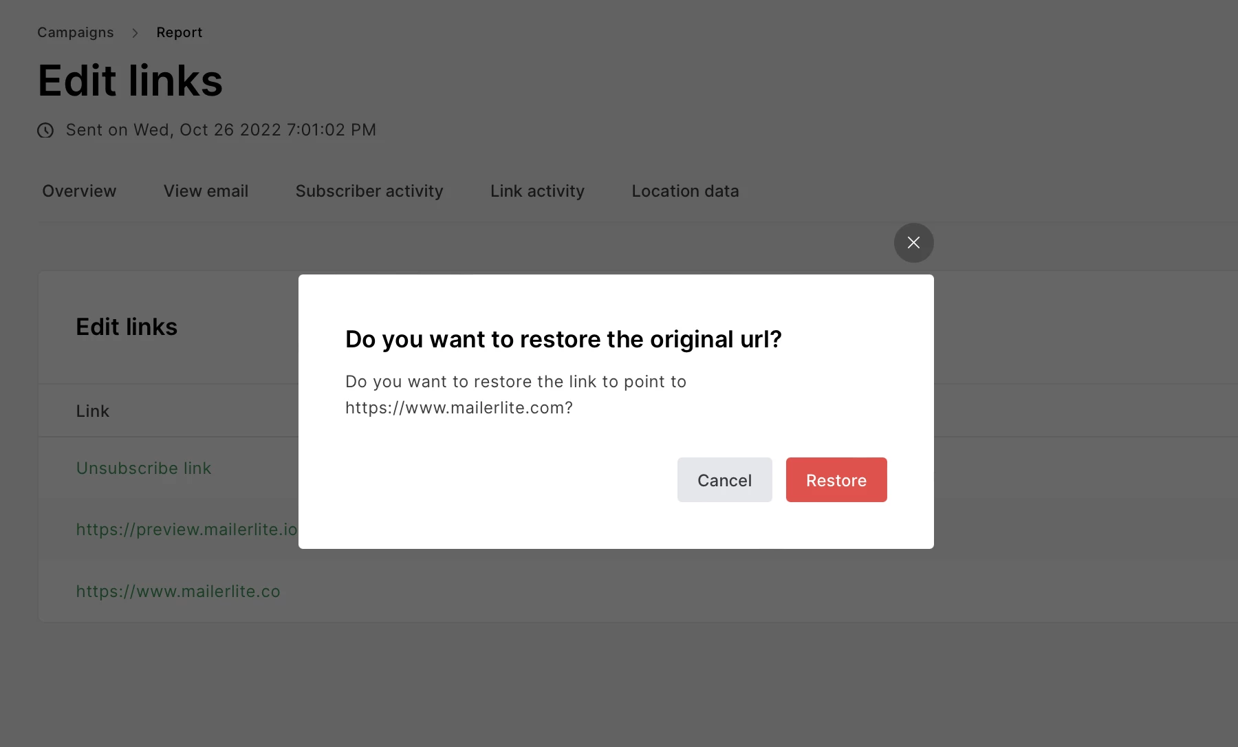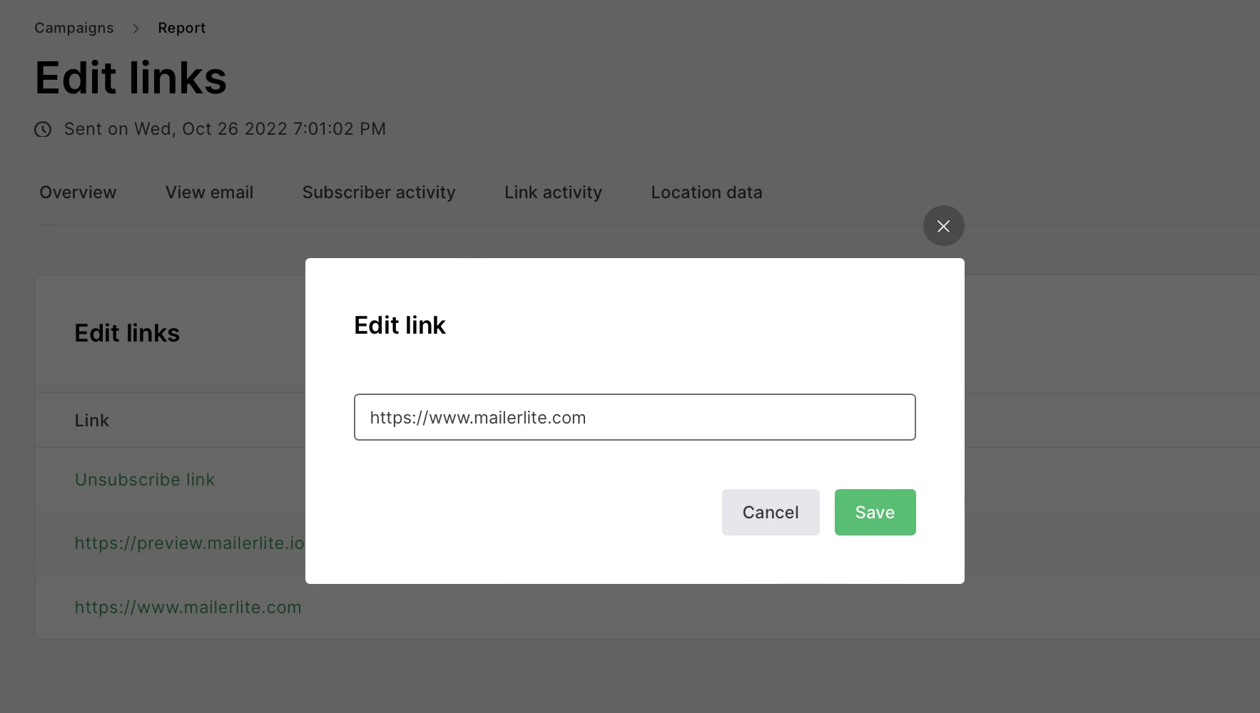If you are using the newest version of MailerLite and have a Growing or Advanced plan, it is possible to change the link yourself. If you are using the MailerLite Classic, to have an incorrect link amended in a sent campaign, you must contact our support team.