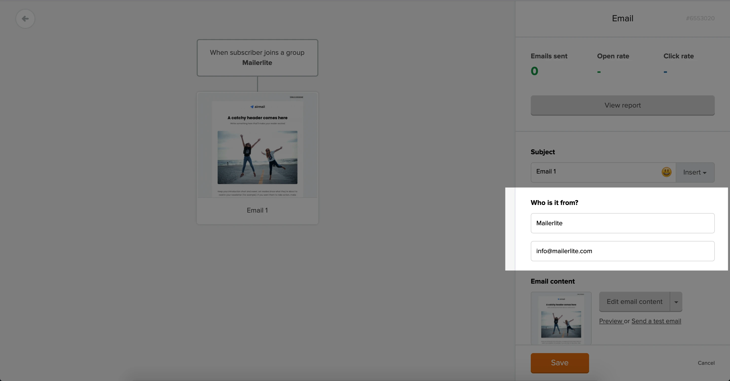 Note: We recommend using your own name and email and avoid no-reply email addresses. Using a personal and recognizable sender address can improve your email deliverability. A great way to maximize your email deliverability is to authenticate your sending domain.