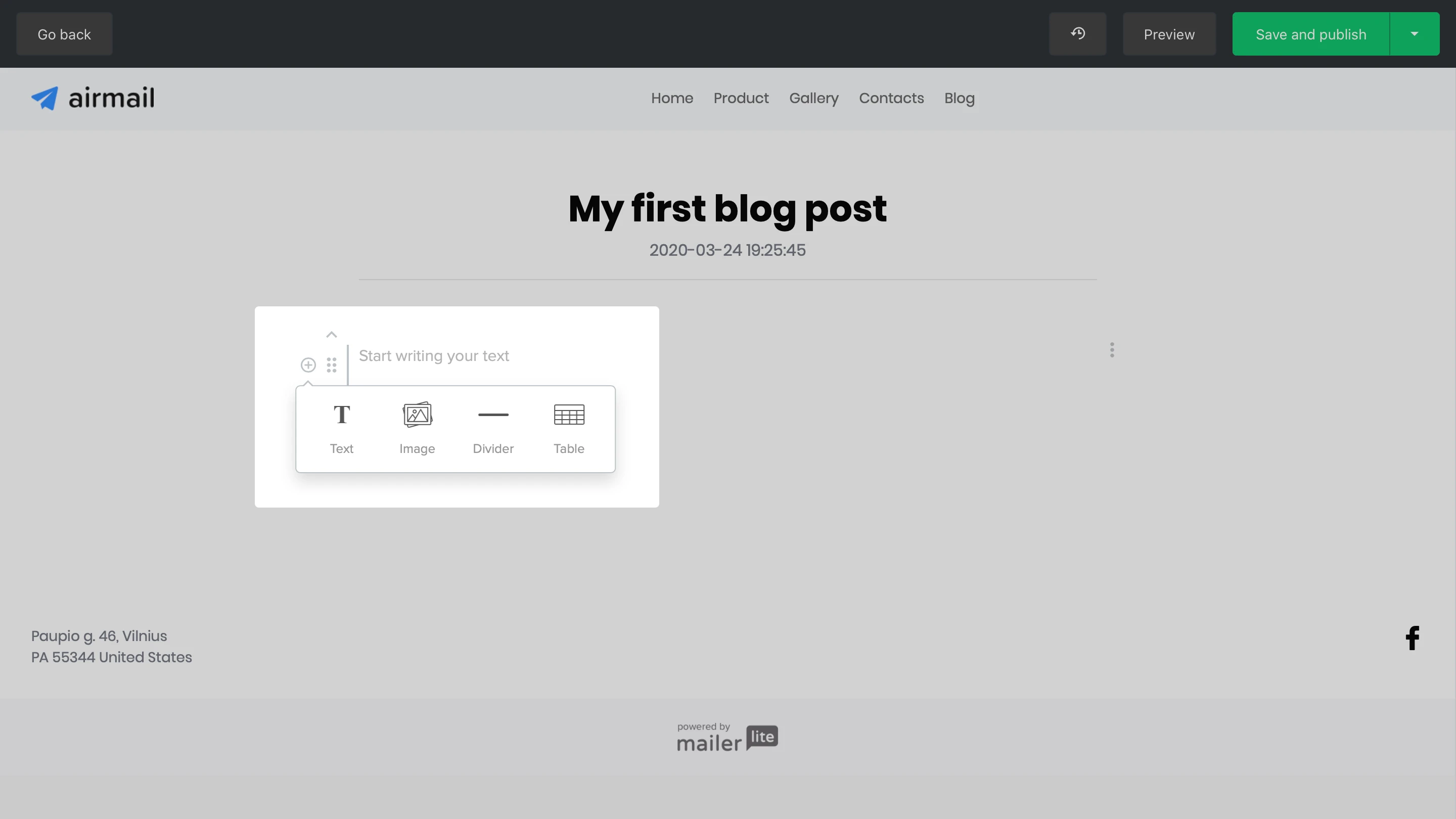 Now you can begin writing your blog post by typing directly into the blog post editor.