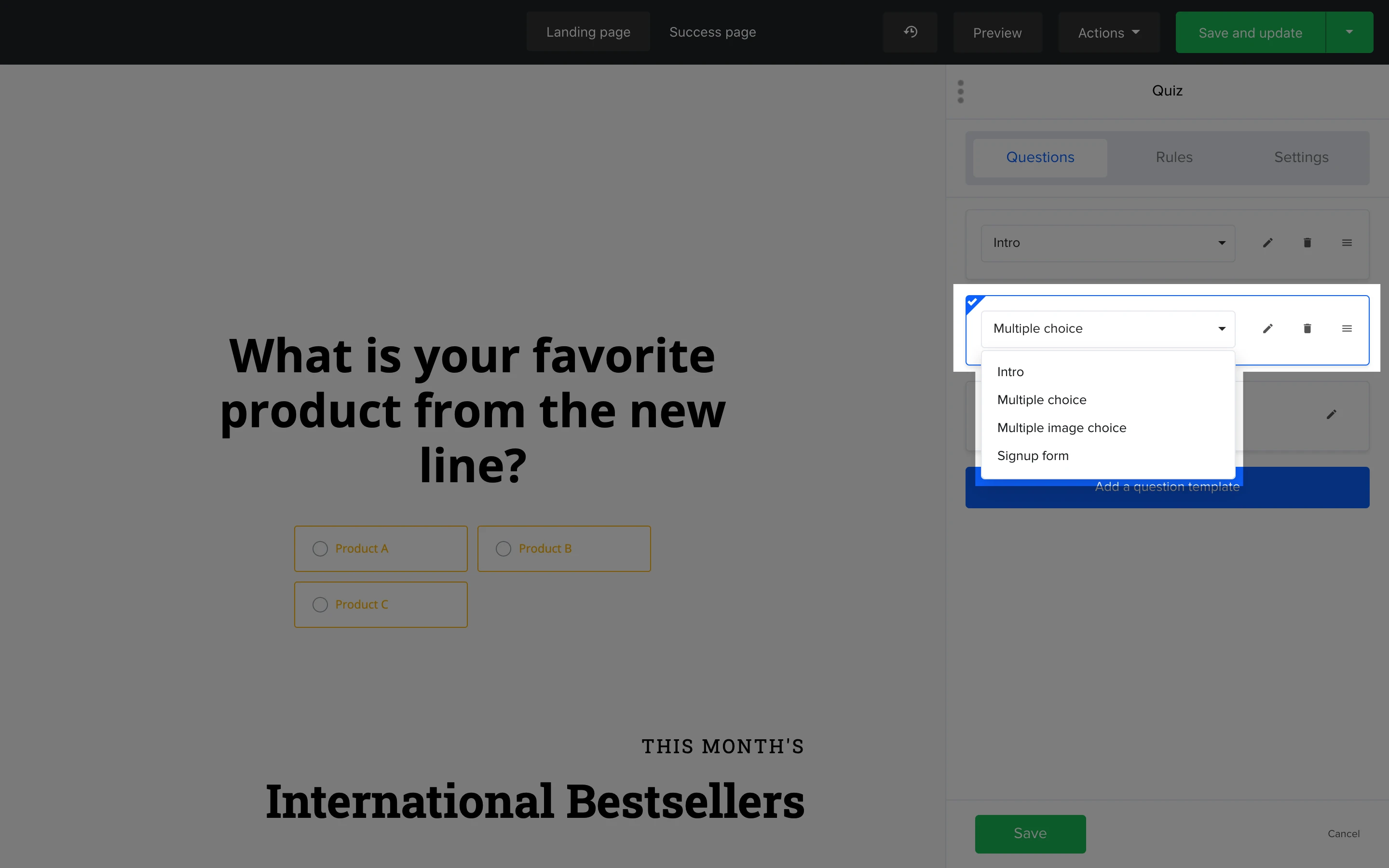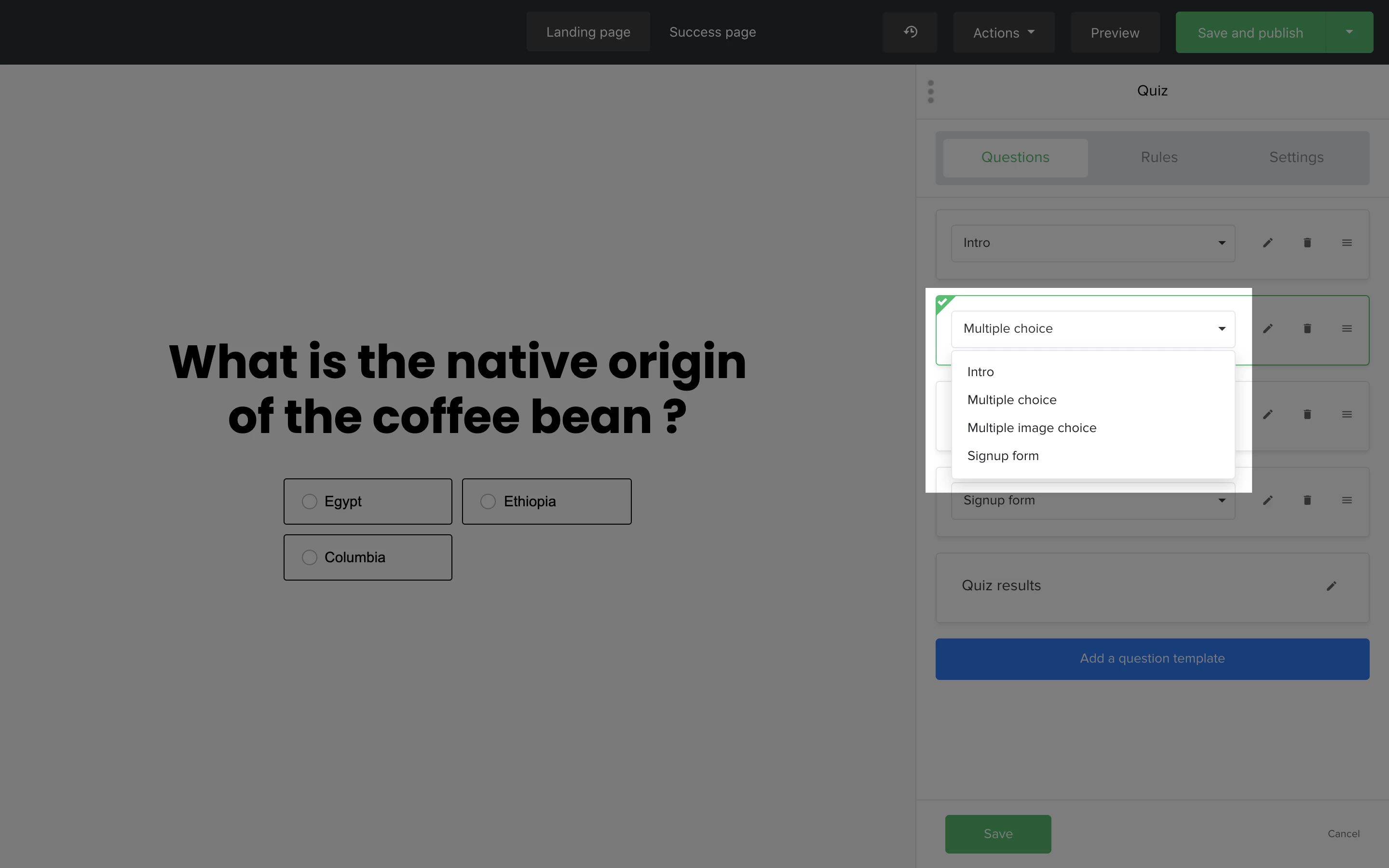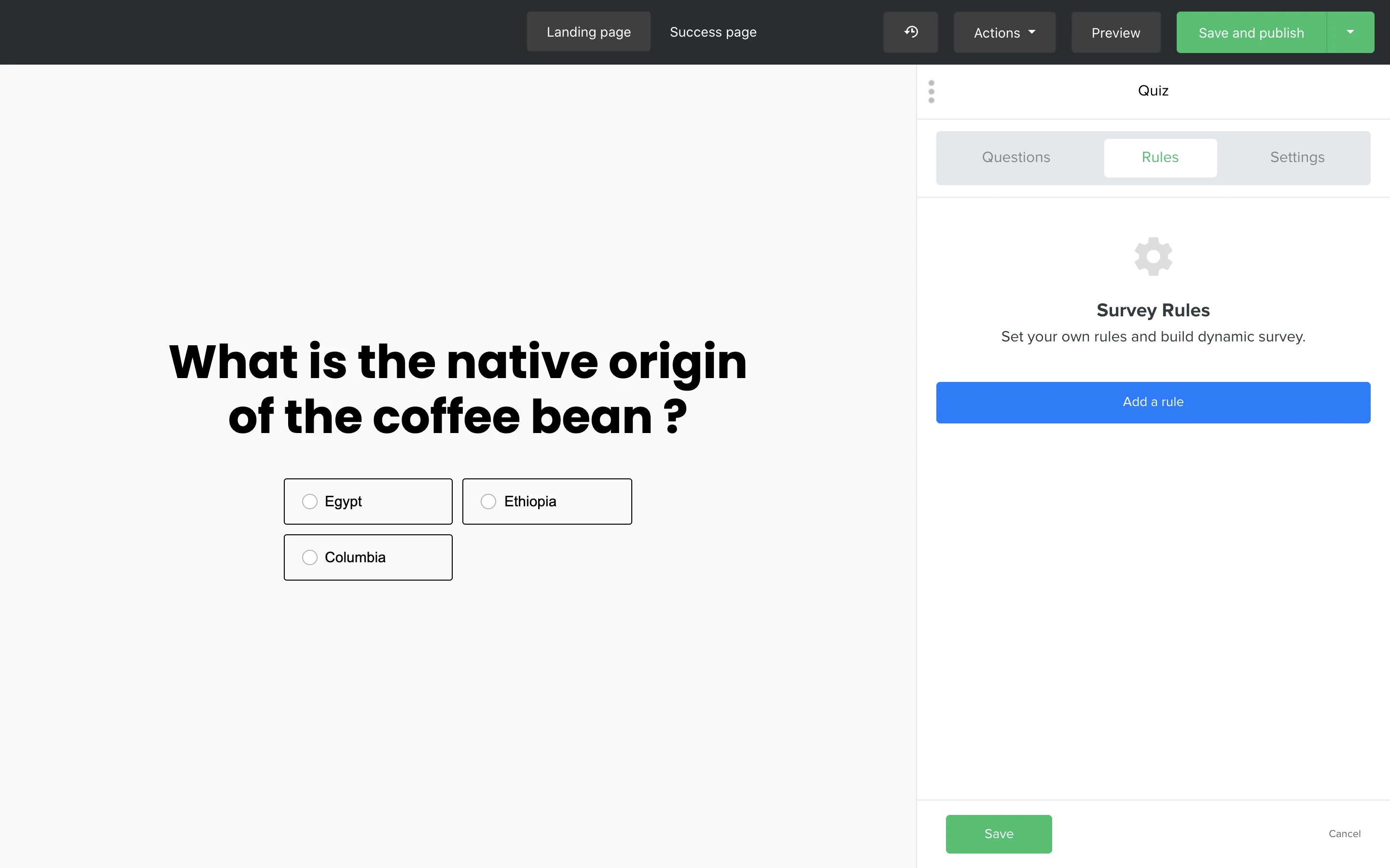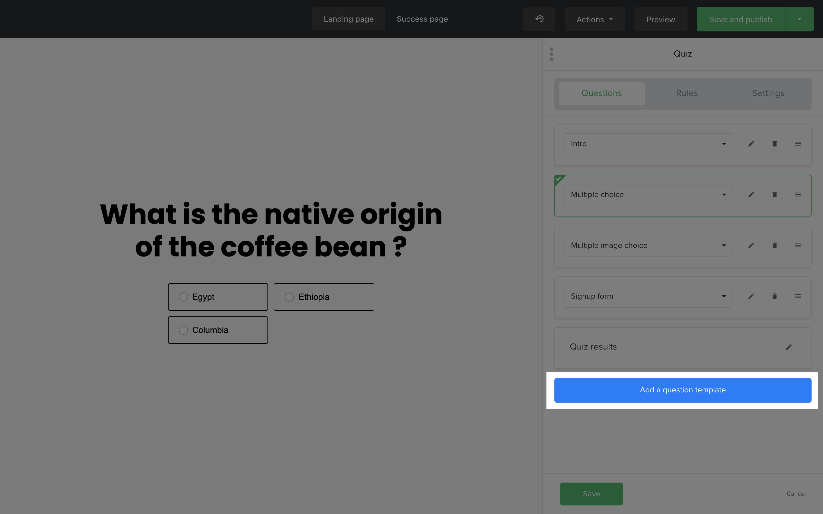 Once you’re satisfied with the design of your landing page and quiz, you can save and publish your landing page by clicking the Save and publish button. Alternatively, you can save your landing page as a draft.