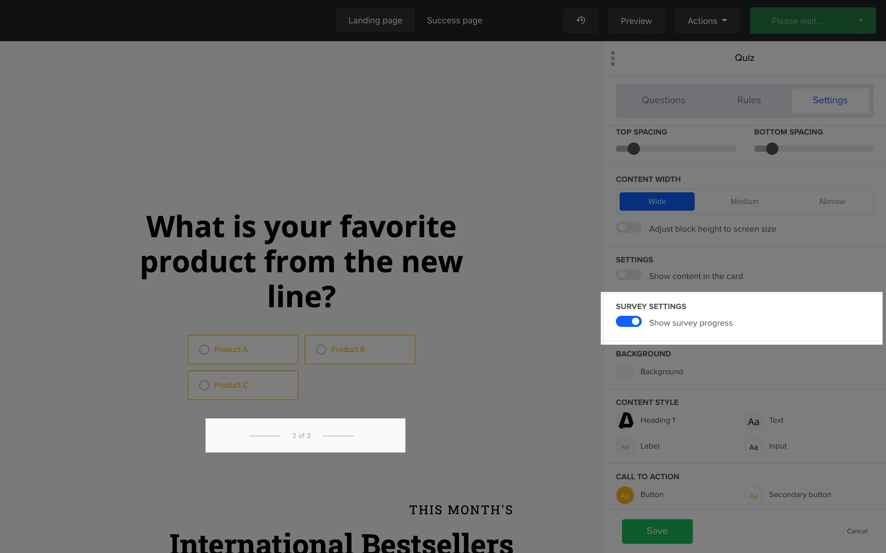 You can also opt to show survey progress under Survey settings by toggling Show survey progress to on.