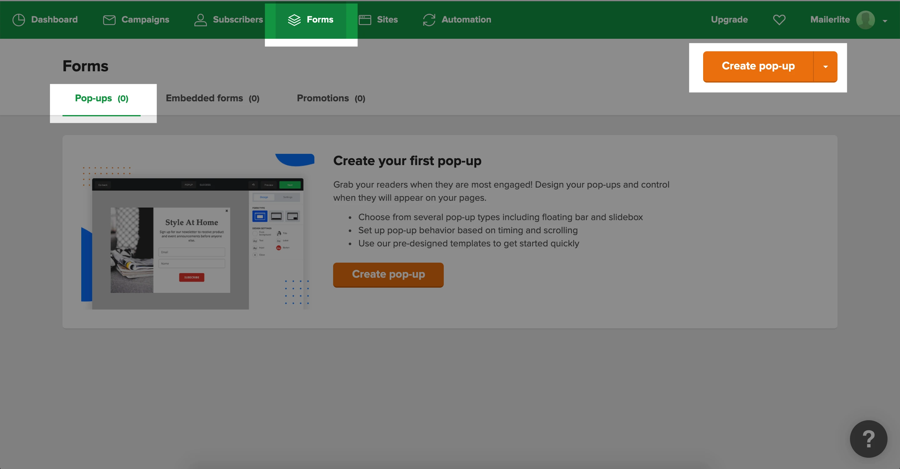 A pop-up form is usually a small window with a message that appears while a visitor is browsing your website. They’re an excellent way to promote your newsletter and collect subscribers.