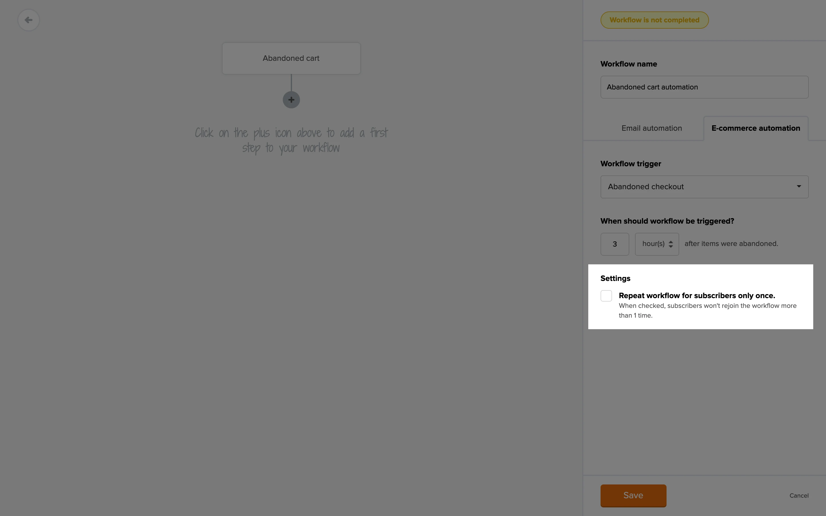 Since your workflow might have more than one step, we check the status of the cart before each step in the workflow sequence. Don’t worry, your subscribers won’t get a recovery email if the cart was already recovered.