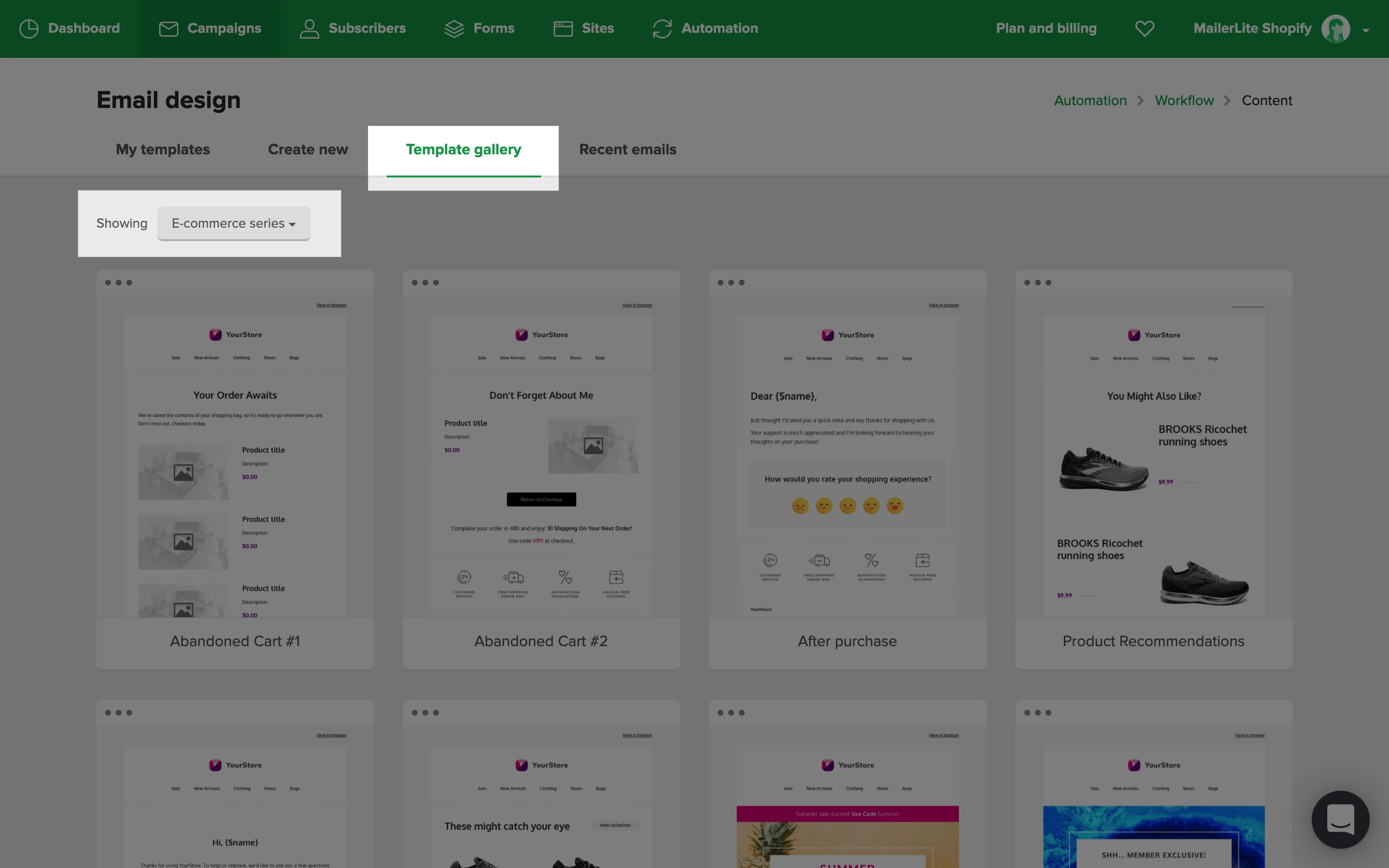9. Create your abandoned cart email from scratch, or choose a template from our template gallery.