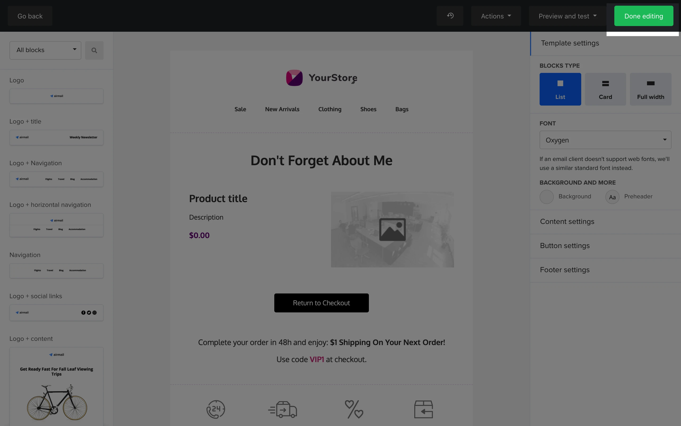 10. Once you’ve finished designing your email, click Done editing.