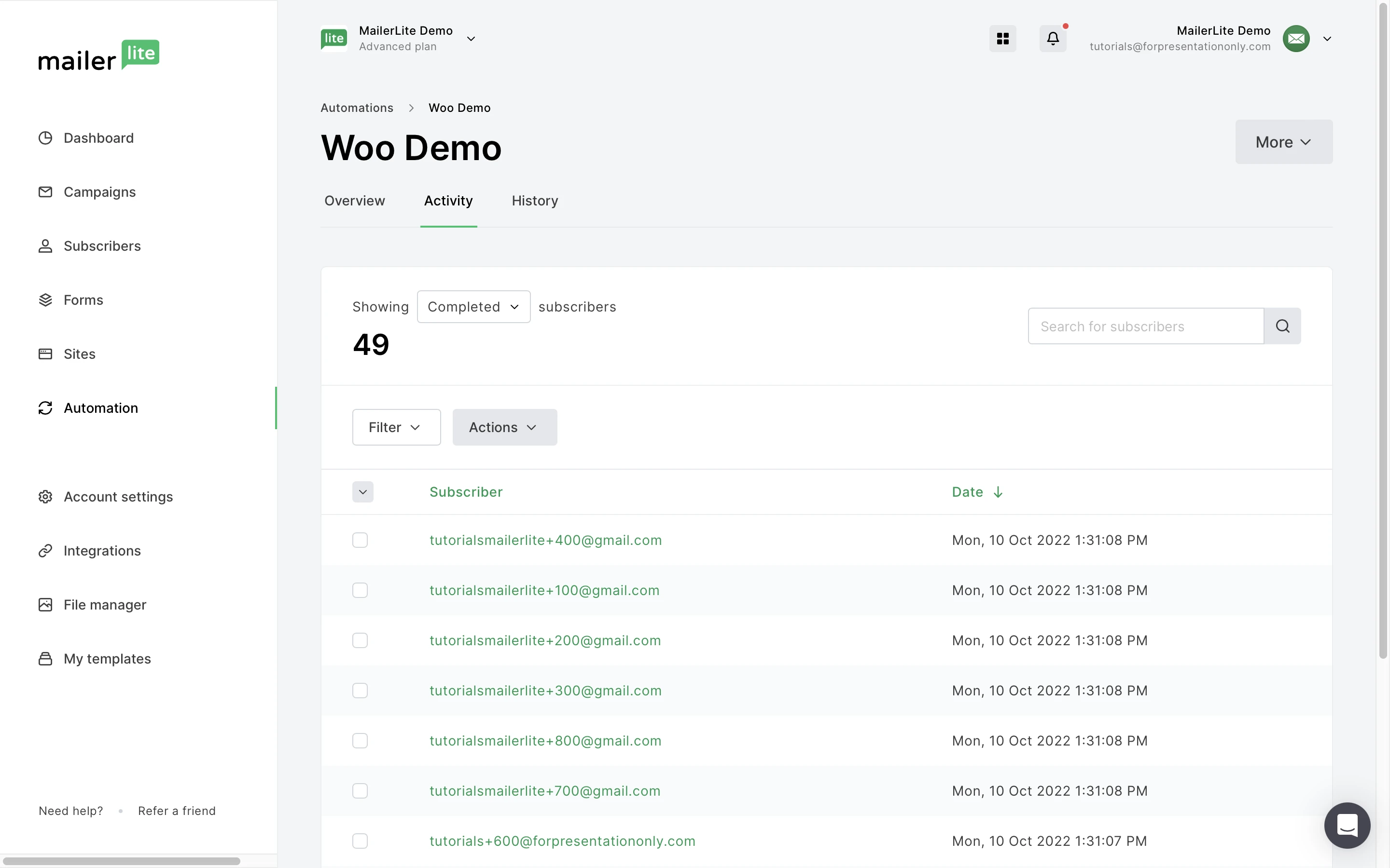Confirm that your integration is synced and sending real-time updates to MailerLite.