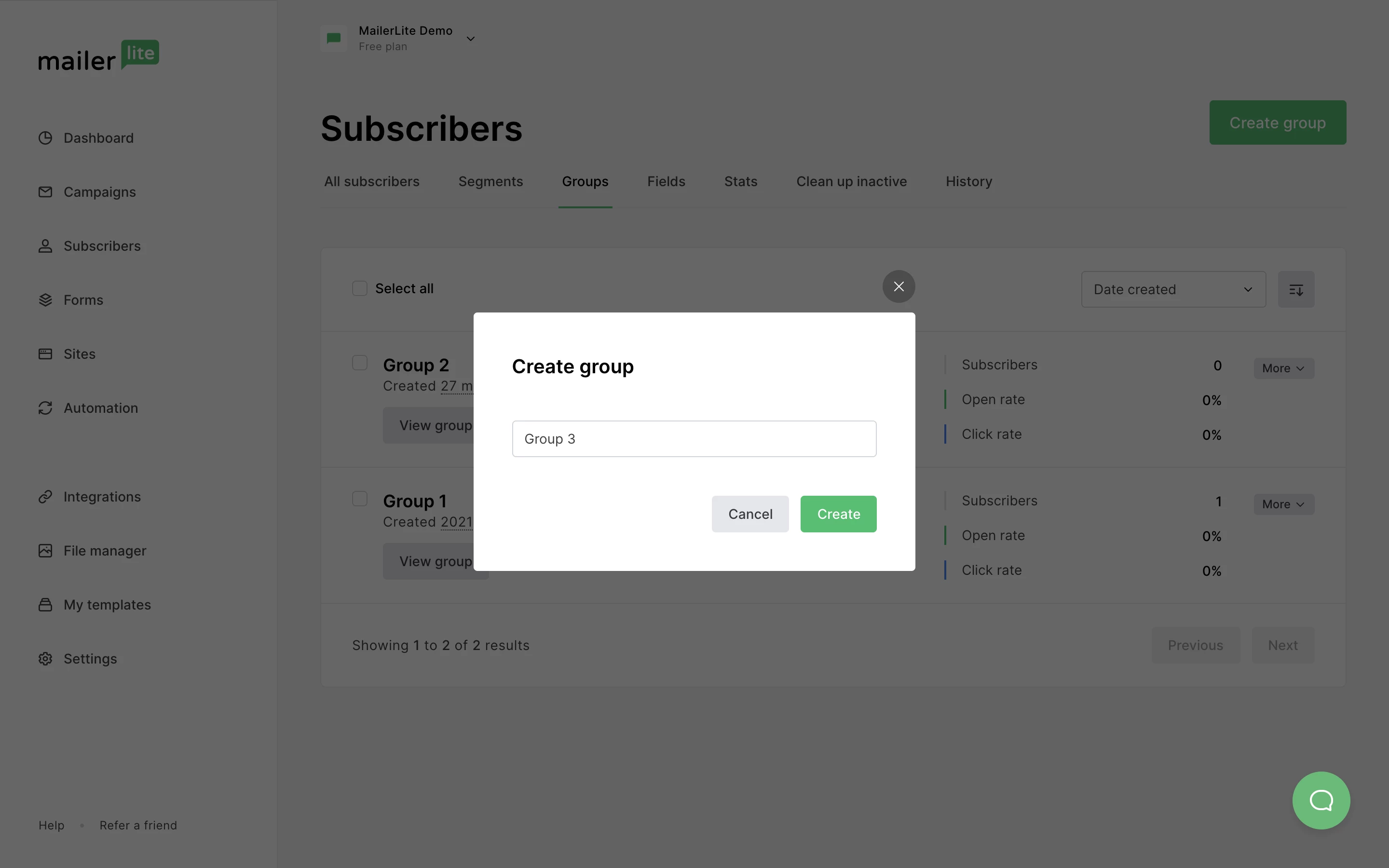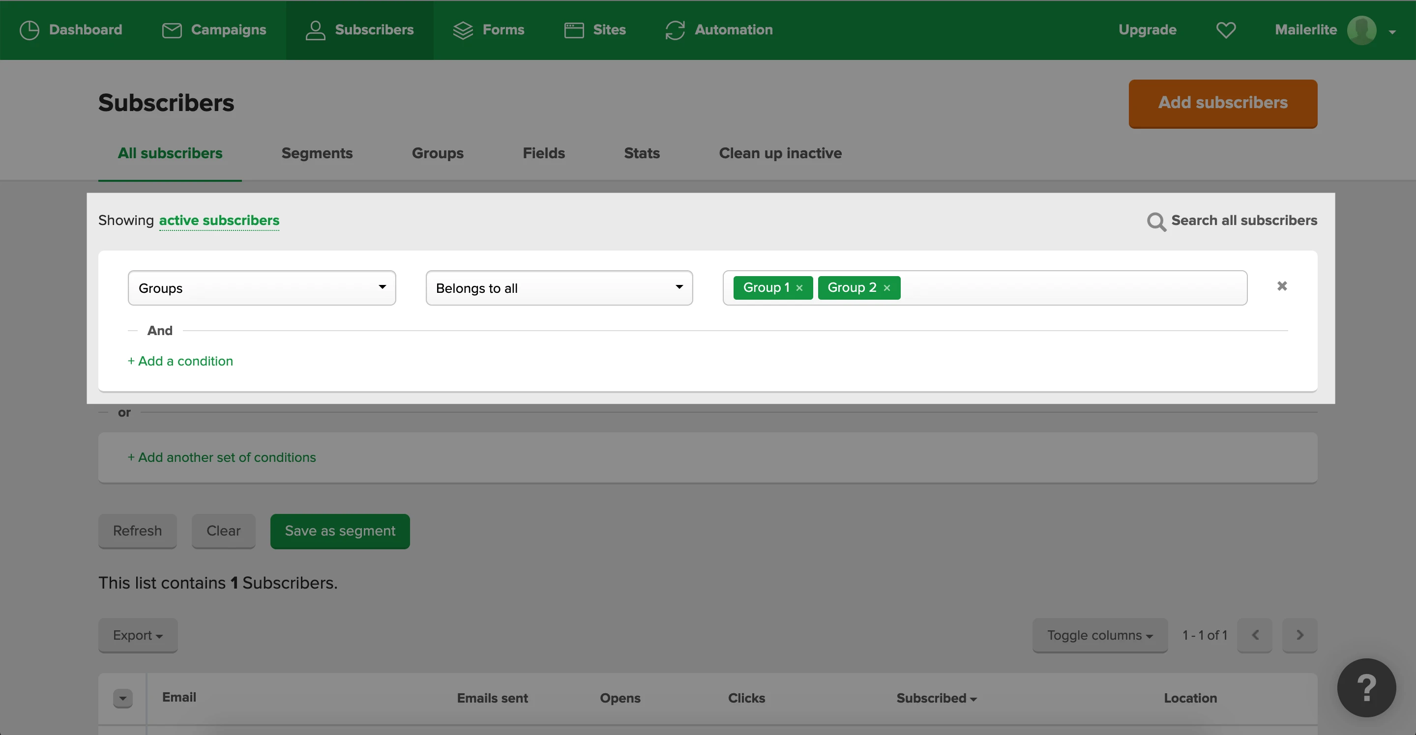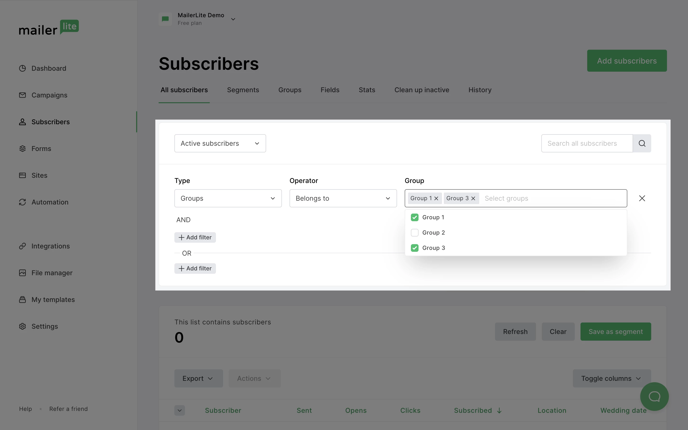 Note: Even though subscribers can be in multiple groups at a time, they are only counted once towards your plan’s limit.