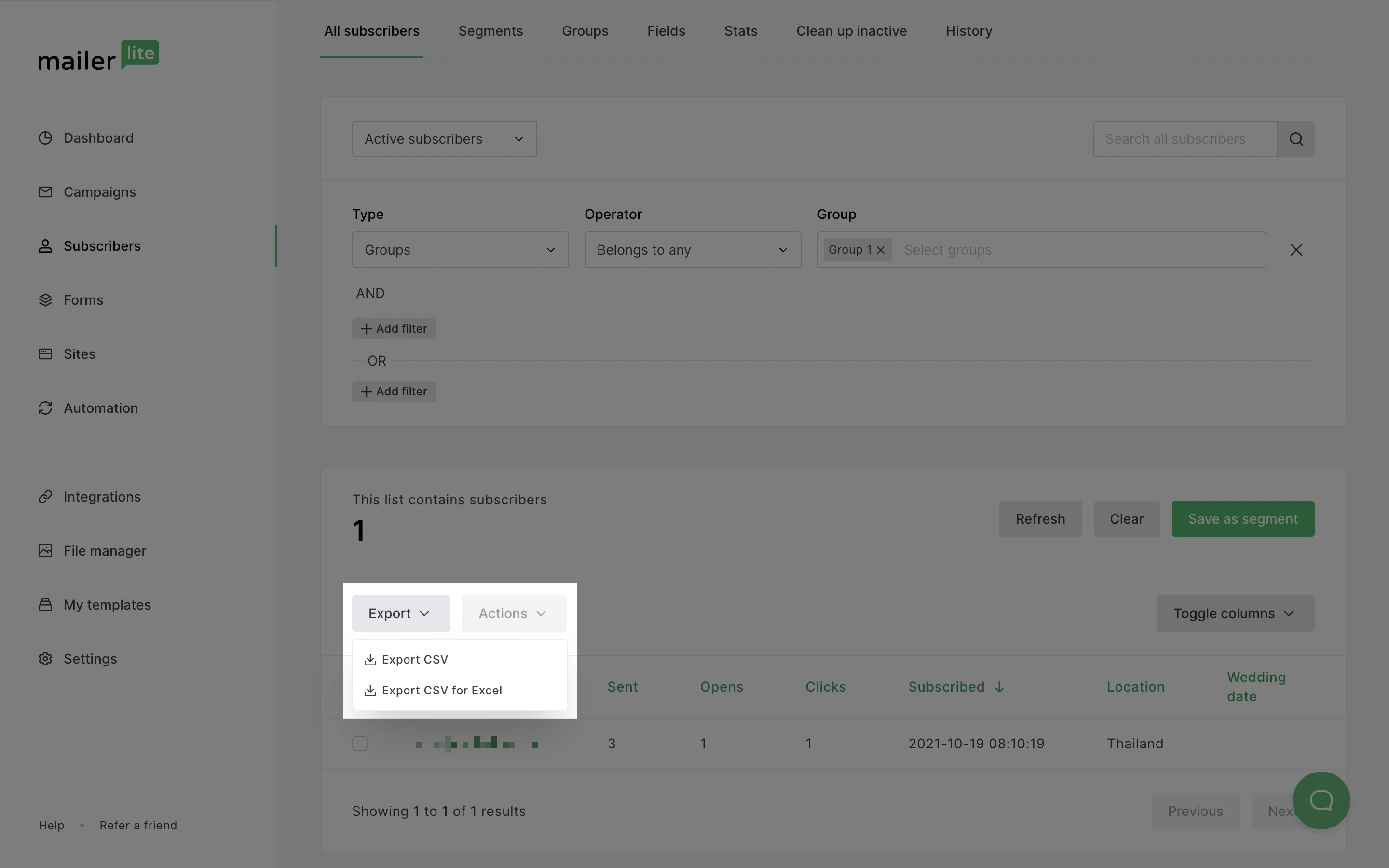 You can export each group into its own CSV file to keep your audiences organised in and out of MailerLite.