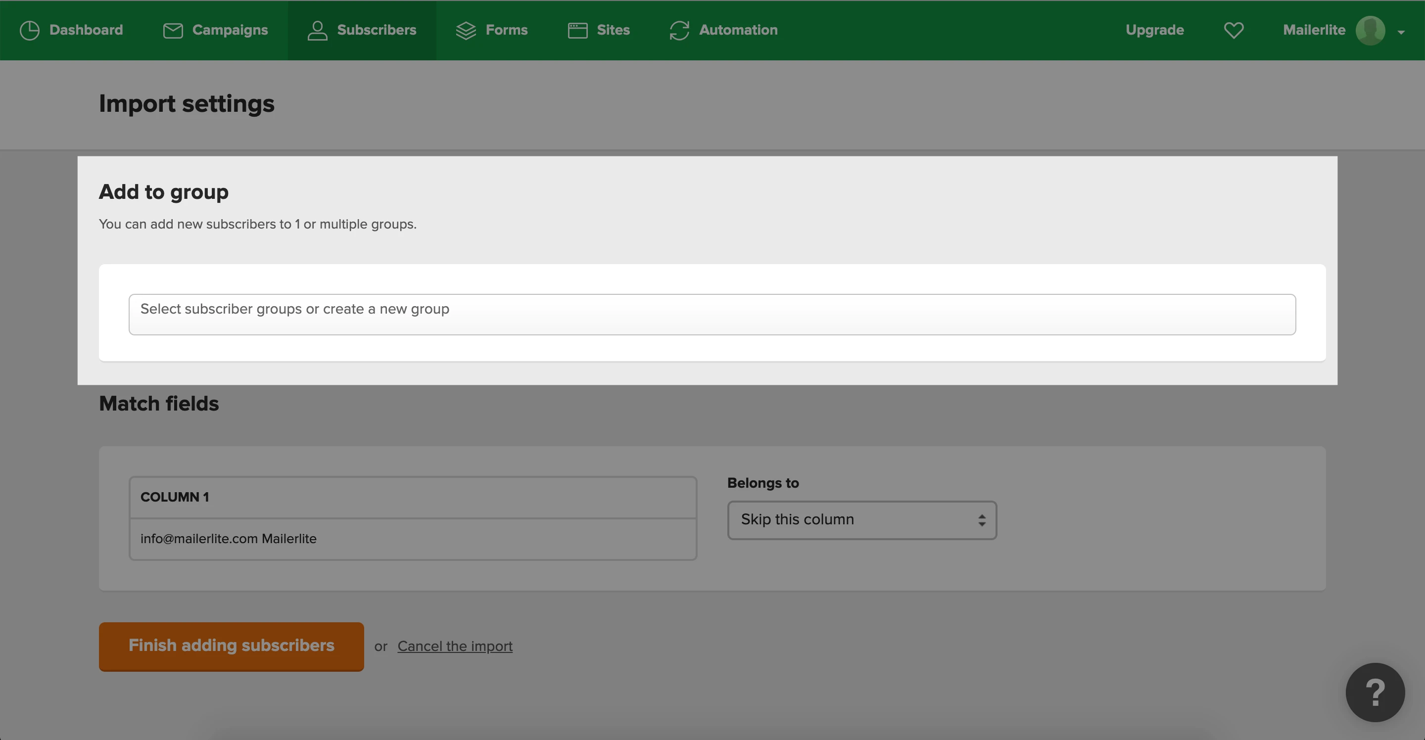 To learn more about importing subscribers, see How to import subscribers.