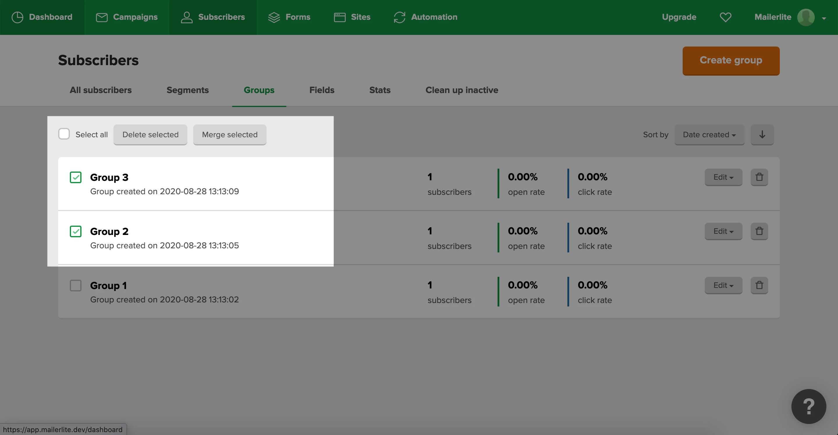 Select the groups you’d like to merge by checking the boxes to the left of the group name.