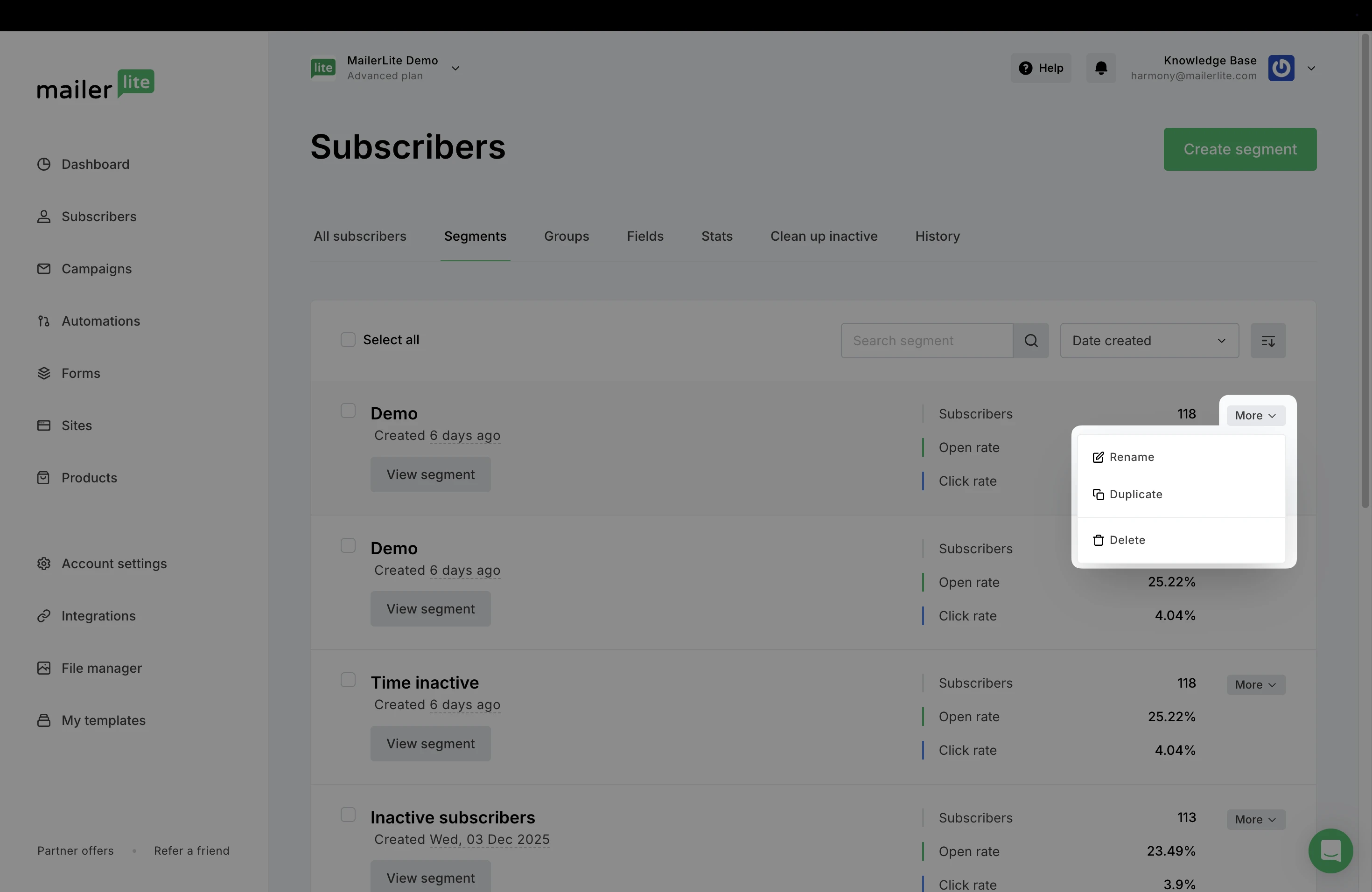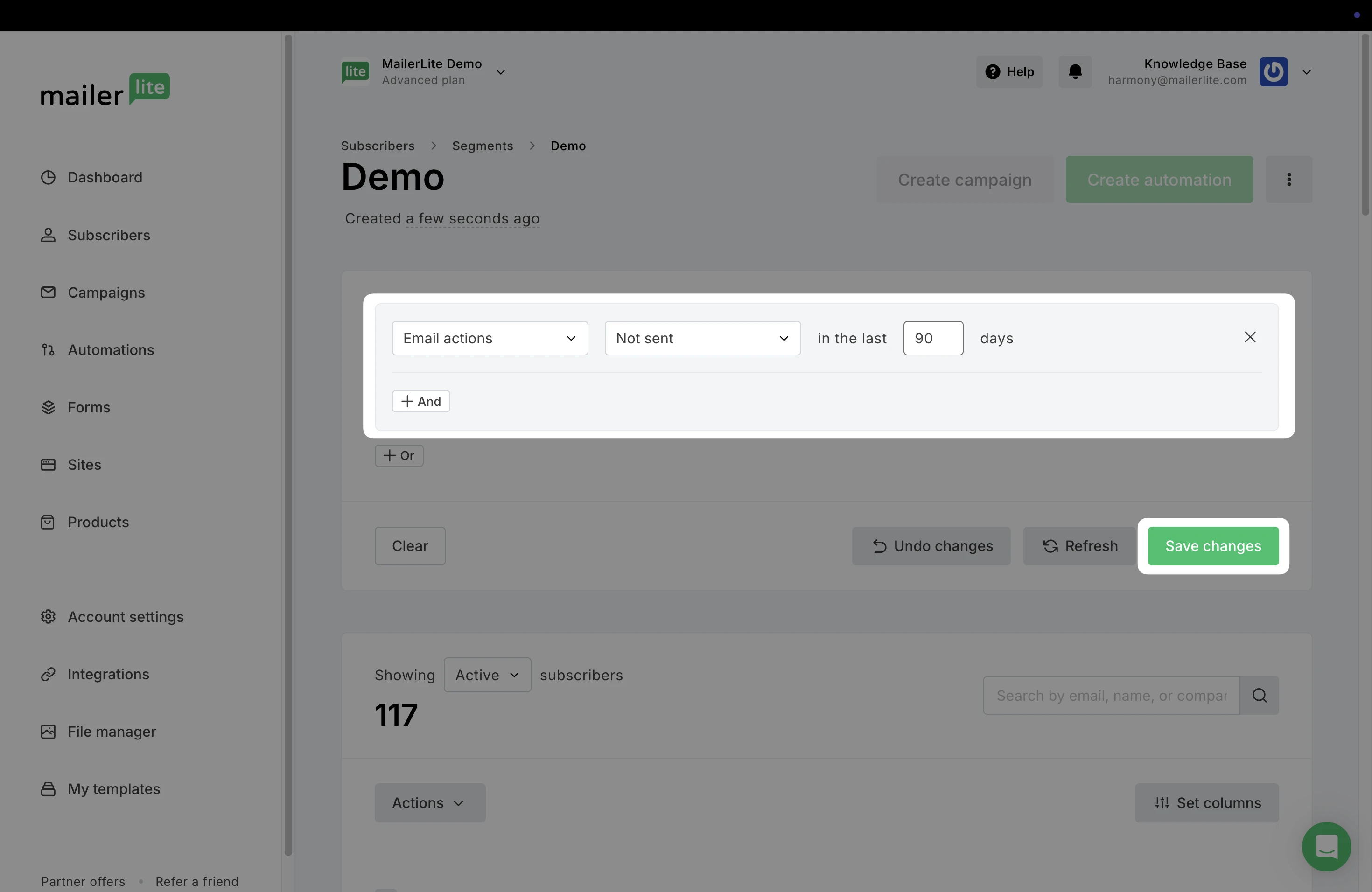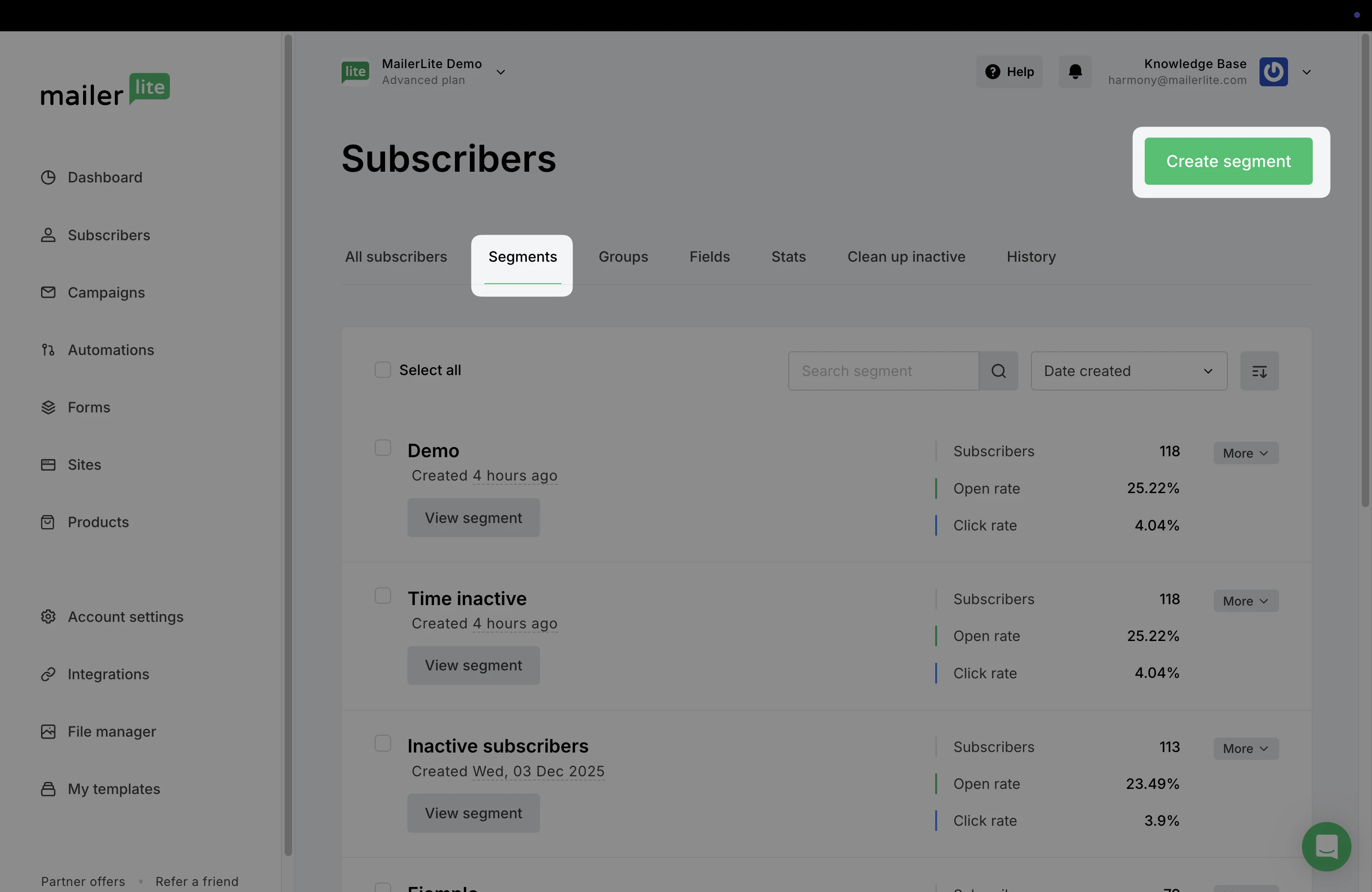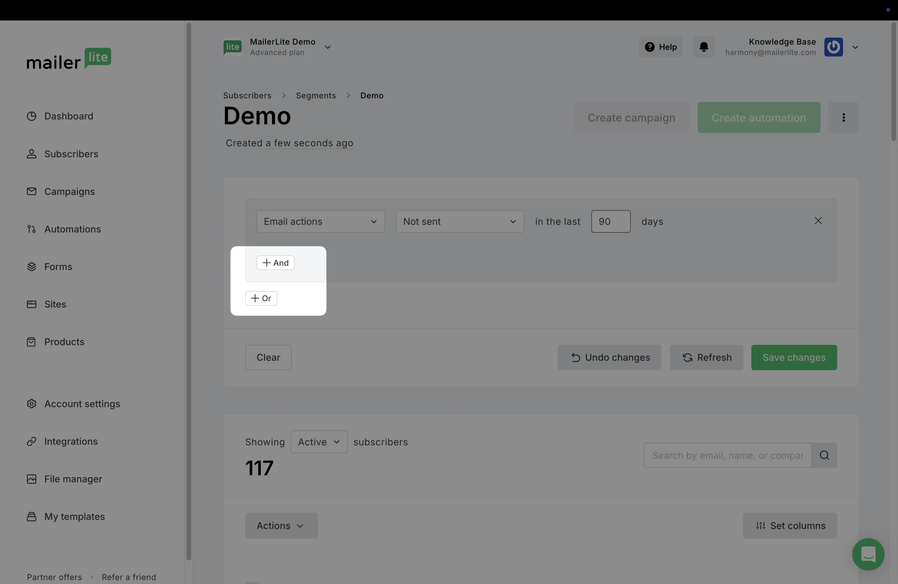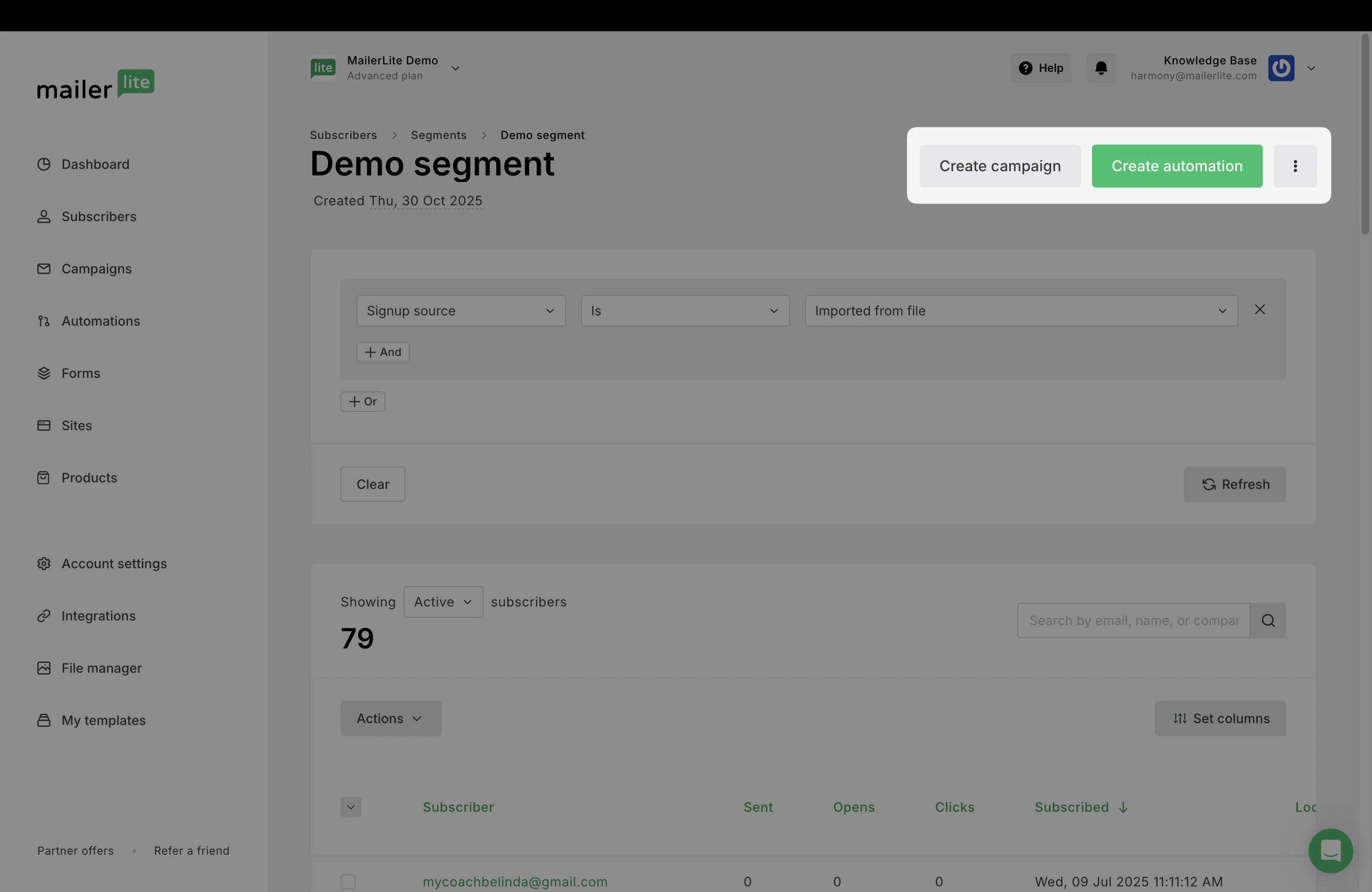 In the same way, if a subscriber no longer meets the conditions of the segment after it was created, they will be automatically removed.