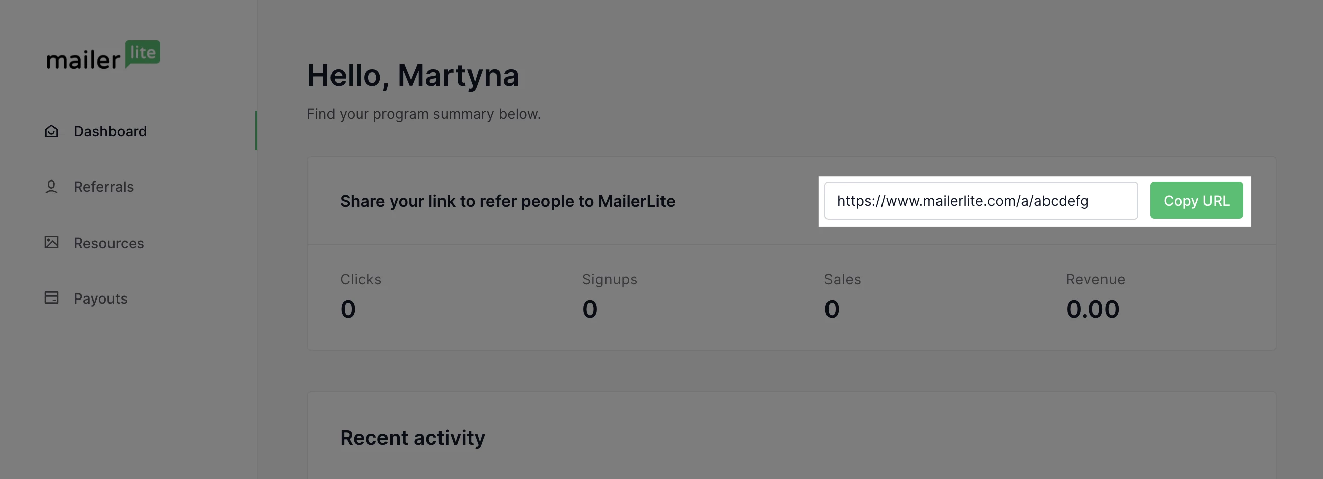 If your default affiliate link is: https://www.mailerlite.com/a/abcdefg