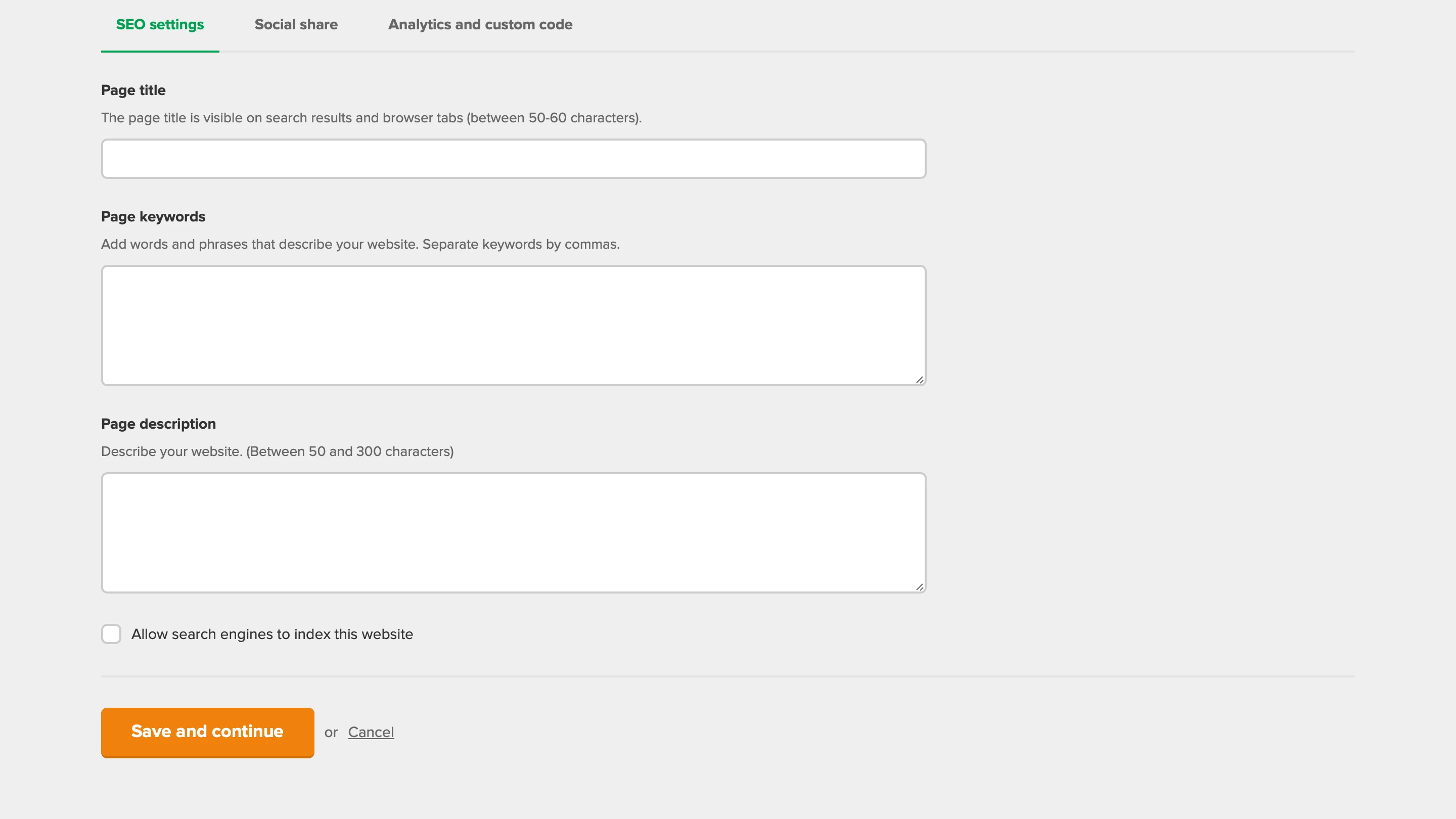 If you did not set up SEO for each individual page, the SEO settings inserted here will apply to the entire website.