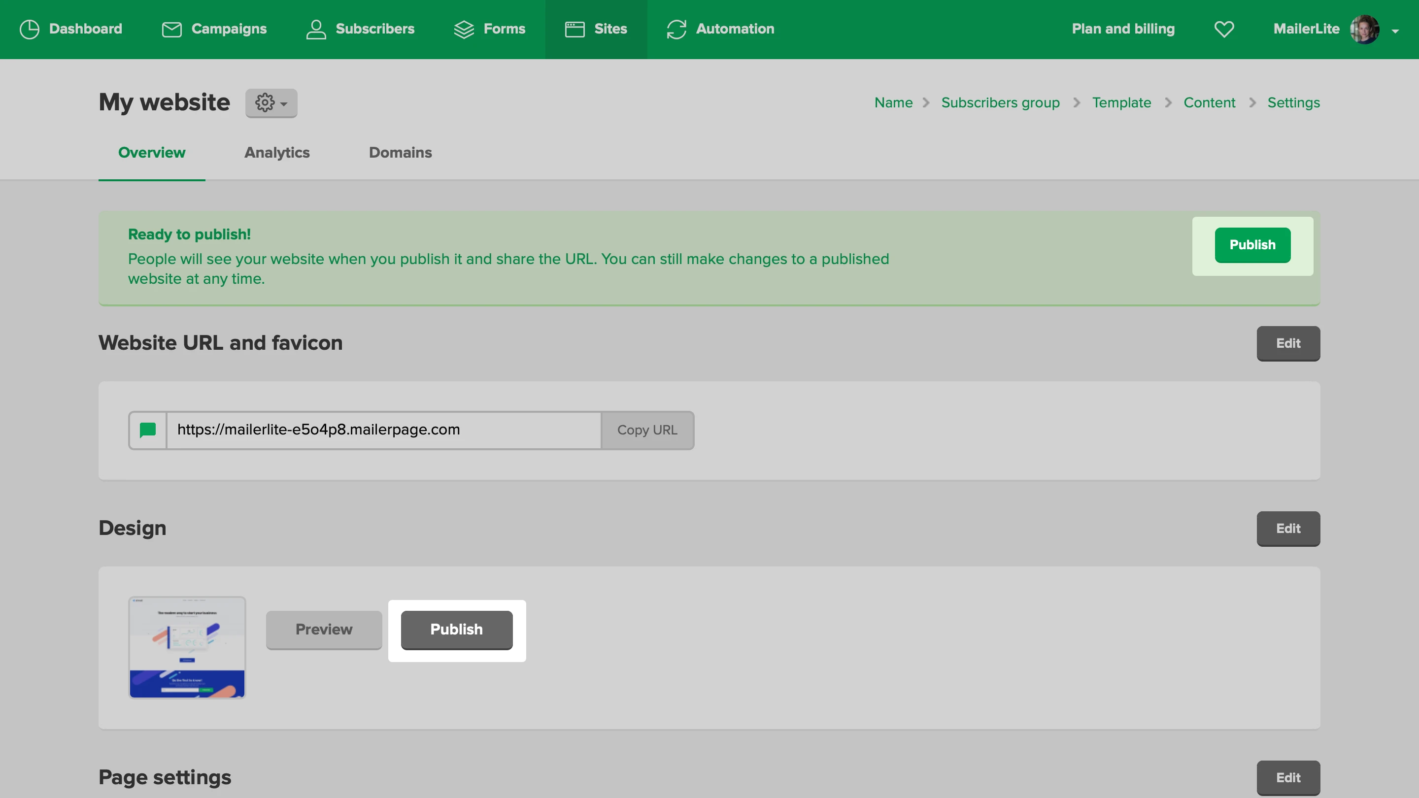 If you’re not ready to publish your website, you can save it as a draft and publish it later from your website overview.