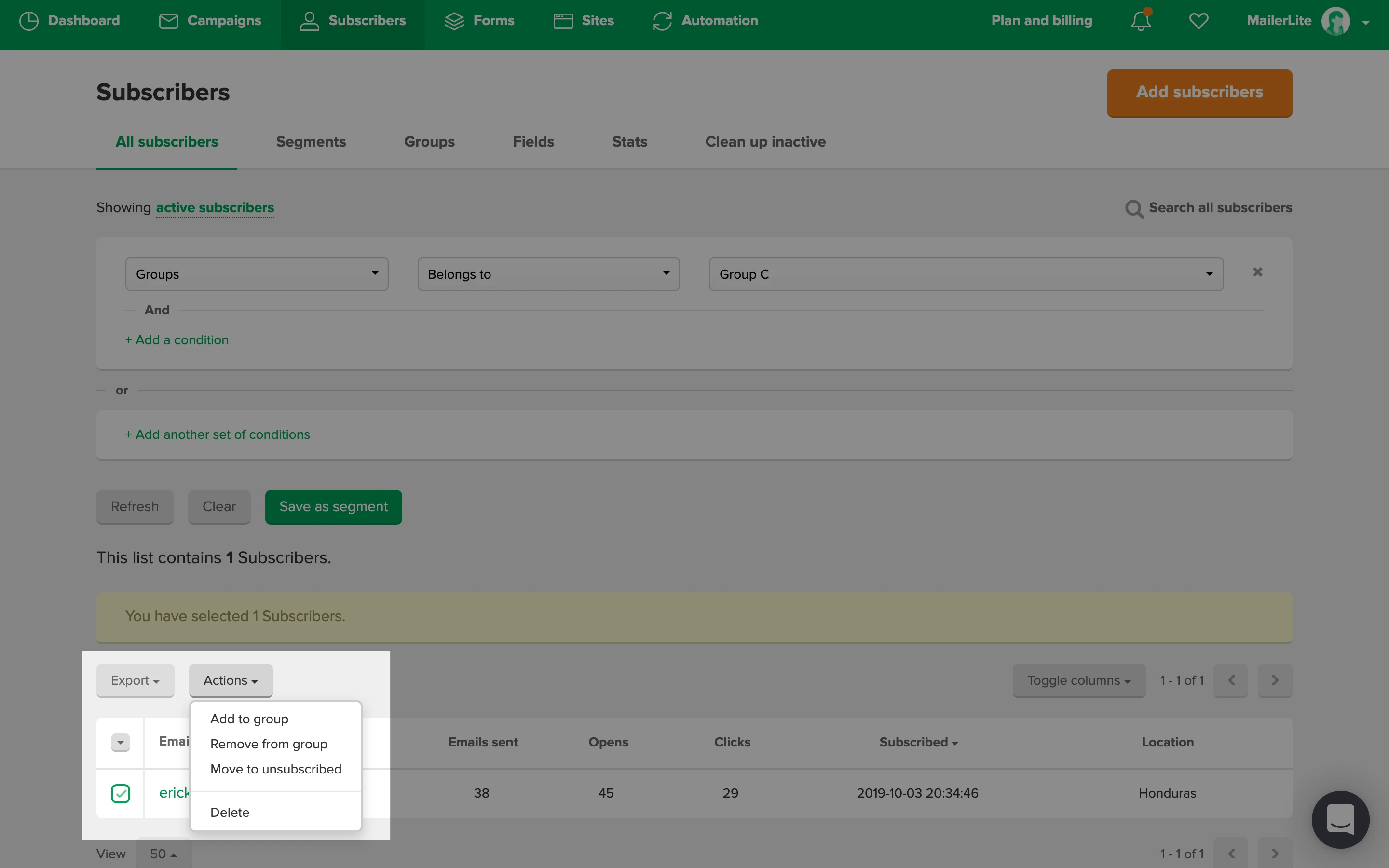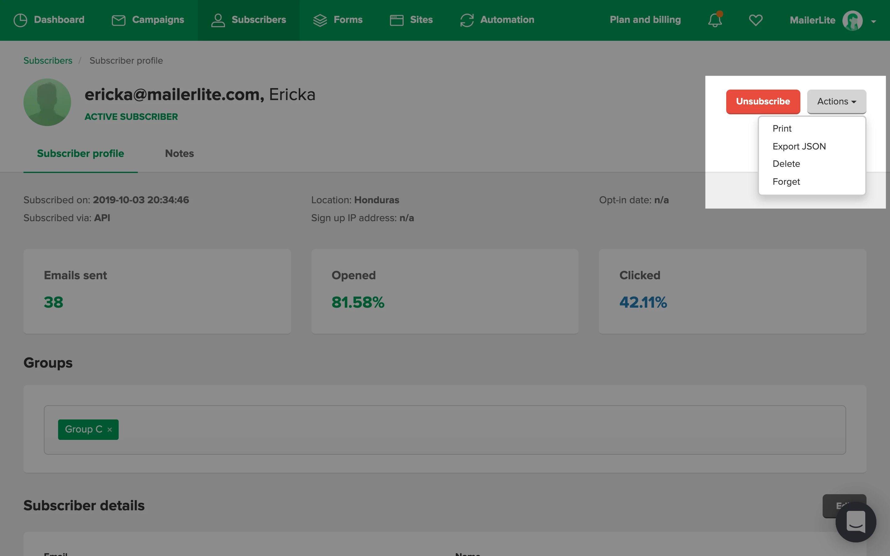 We’ll only focus on deleting and forgetting a subscriber in this article. Read Everything about unsubscribed recipients to learn more about it.