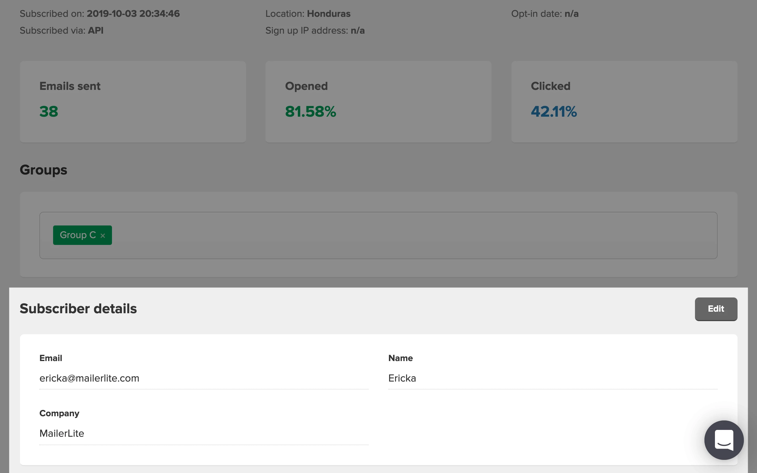It’s possible to add, remove, or update the data of a subscriber on your list. This includes details such as their email address, name, country, company, ect.
