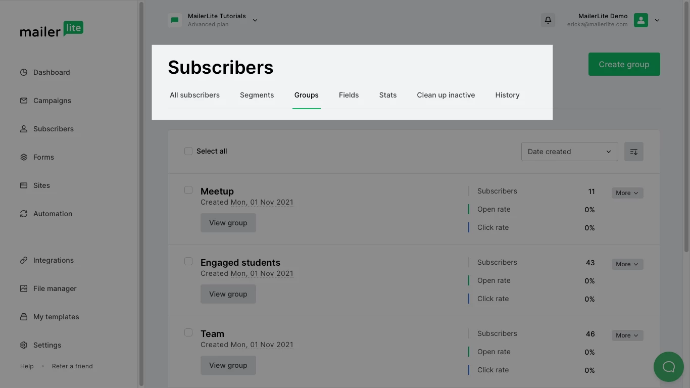 When you create a form or landing page to collect email addresses, you select a group into which subscribers of that form will be added. To find subscribers who were added to a specific group after completing a form: