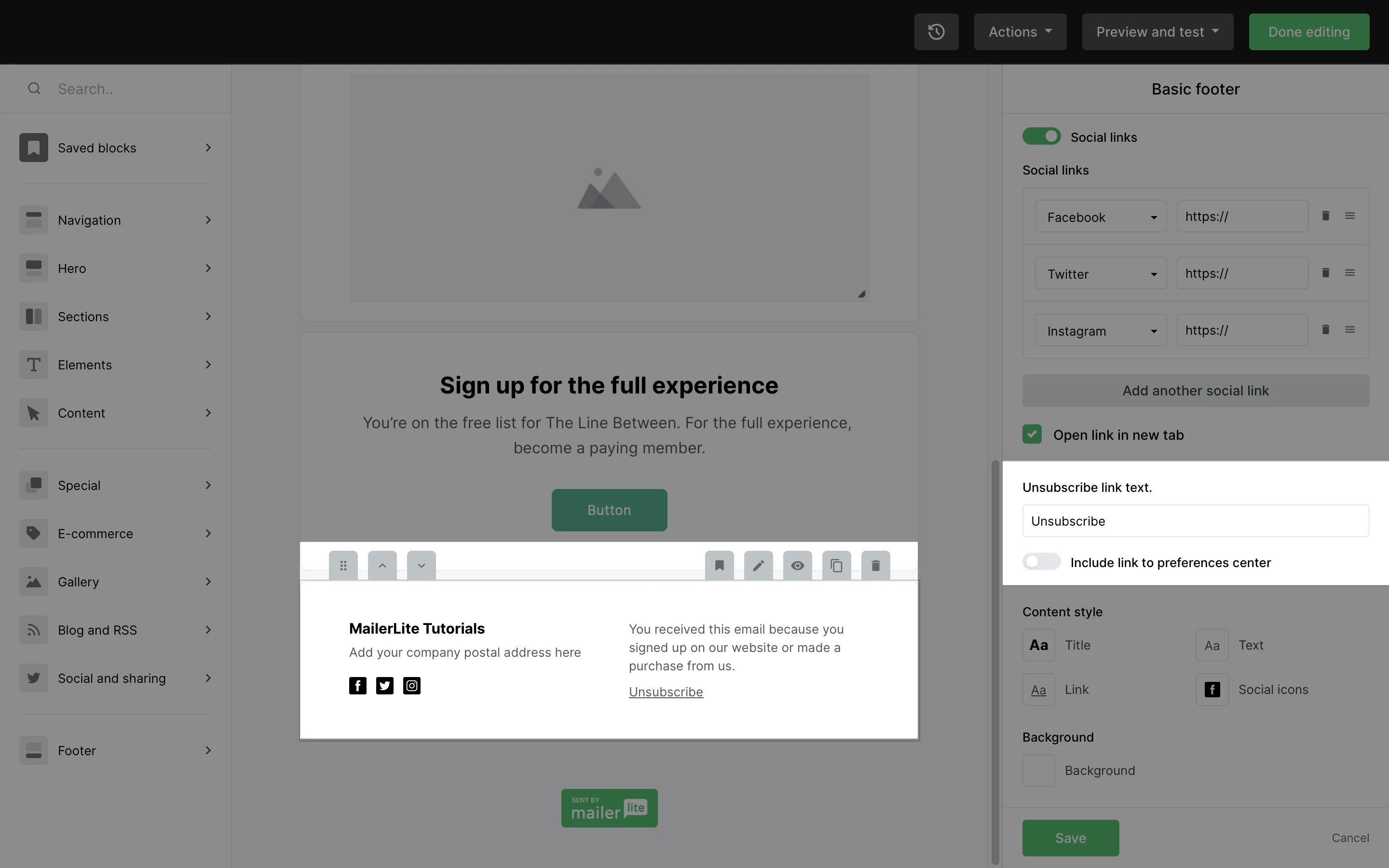 If you have tried the above methods and the “Unsubscribe link is missing.” error message is still showing in your campaign, check our support options and our customer service center for assistance.