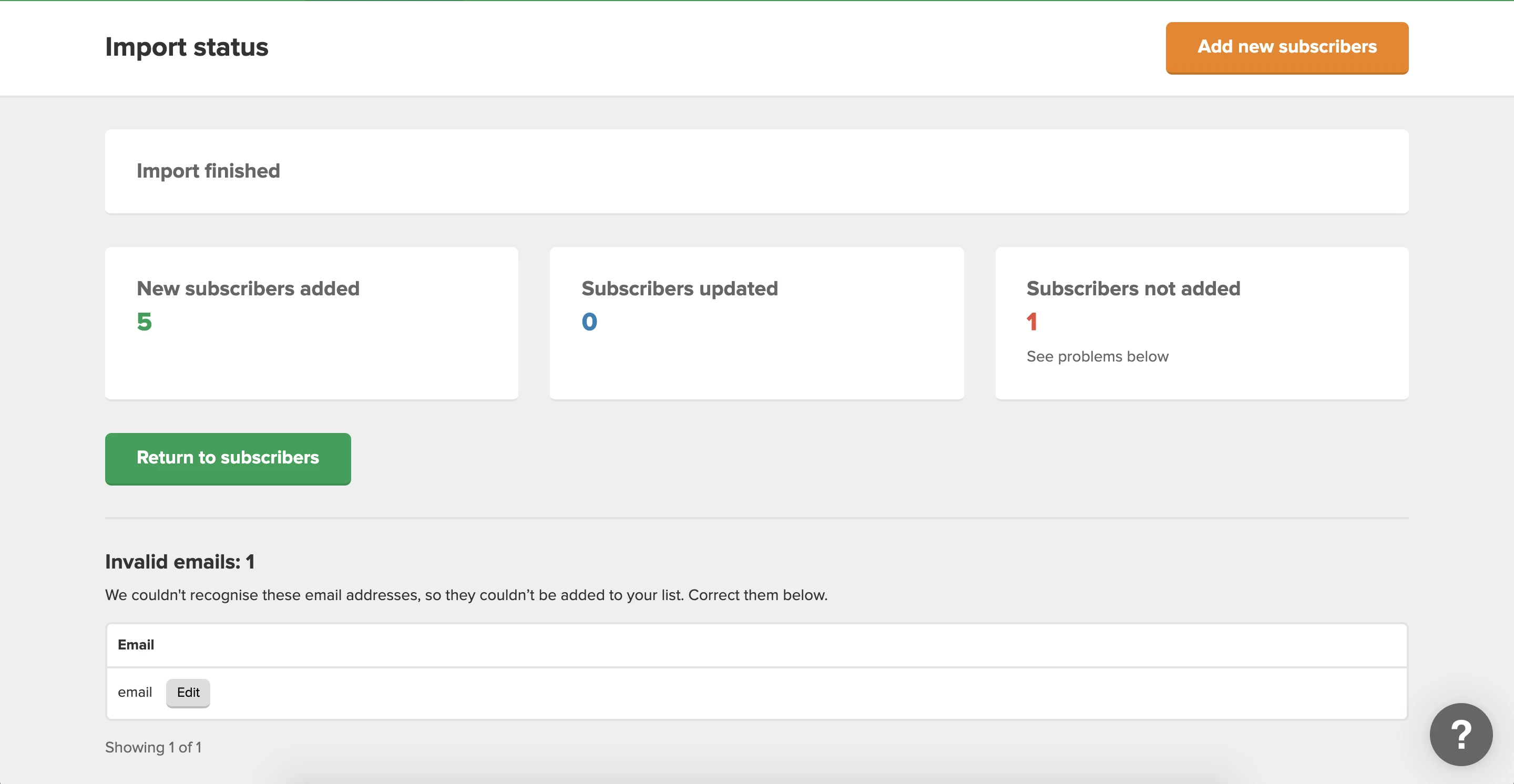 The file will start to import and once the process is done you’ll be notified how many subscribers were added successfully and how many failed (if any).