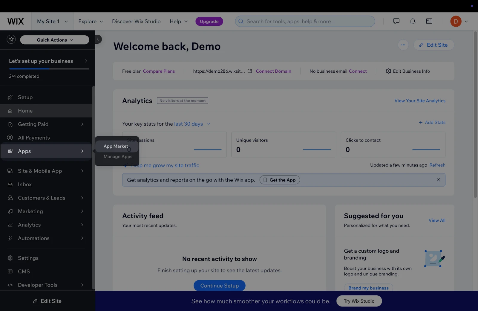 In Wix, you can configure your MailerLite integration settings by selecting Apps and choosing MailerLite.